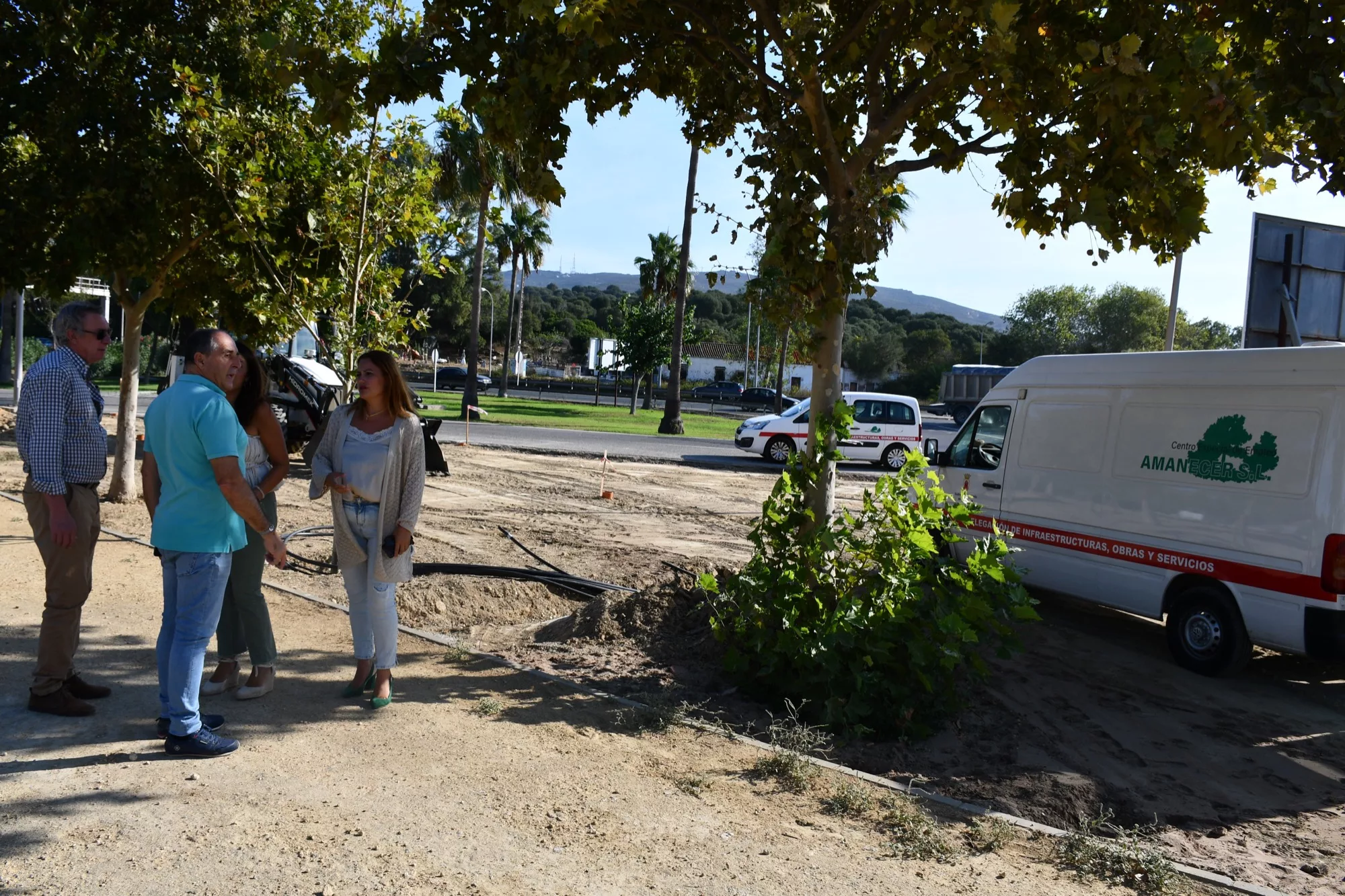 Belén Jiménez explicó que en este paseo central, que conecta dos zonas de la barriada, se va a instalar también luminarias, mientras que en la actualidad se nivela la zona y se instalan sistemas de riego y otro equipamiento.