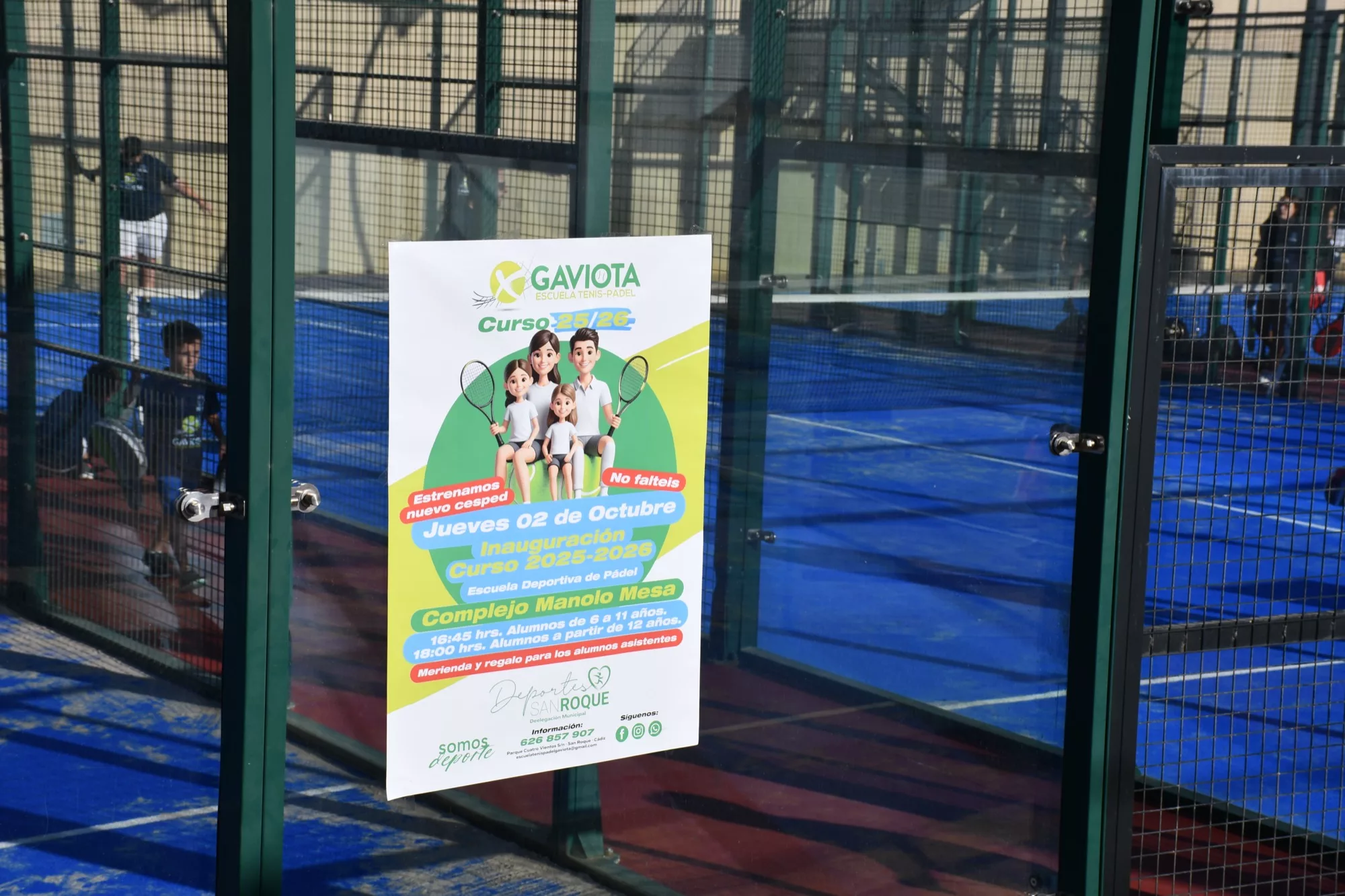 En la tarde de este jueves, el Club Deportivo Gaviota celebró en el Complejo Deportivo Manolo Mesa la inauguración del curso 2025-2026 de la Escuela de Pádel y Tenis. El acto sirvió también para estrenar un nuevo césped artificial azul para las pistas de pádel.