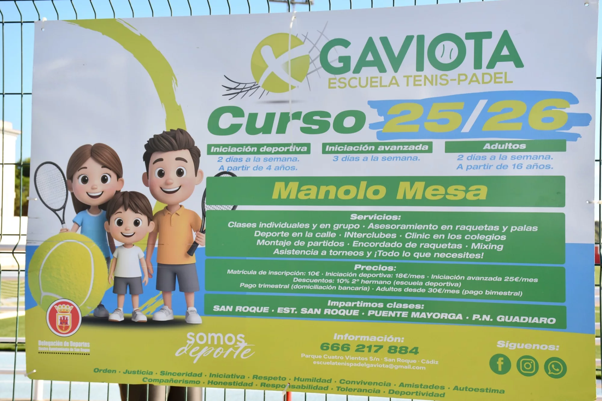 La Escuela Gaviota imparte clases de todas las edades a partir de niños de 4 años y adultos en diferentes niveles en las instalaciones deportivas de San Roque, Puente Mayorga, Estación de San Roque y Pueblo Nuevo de Guadiaro. El horario es de lunes a viernes de 16.00 a 21.00 horas.