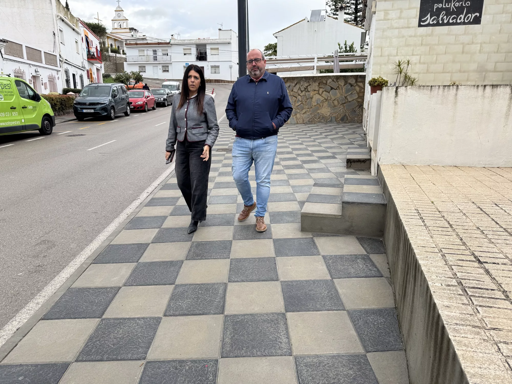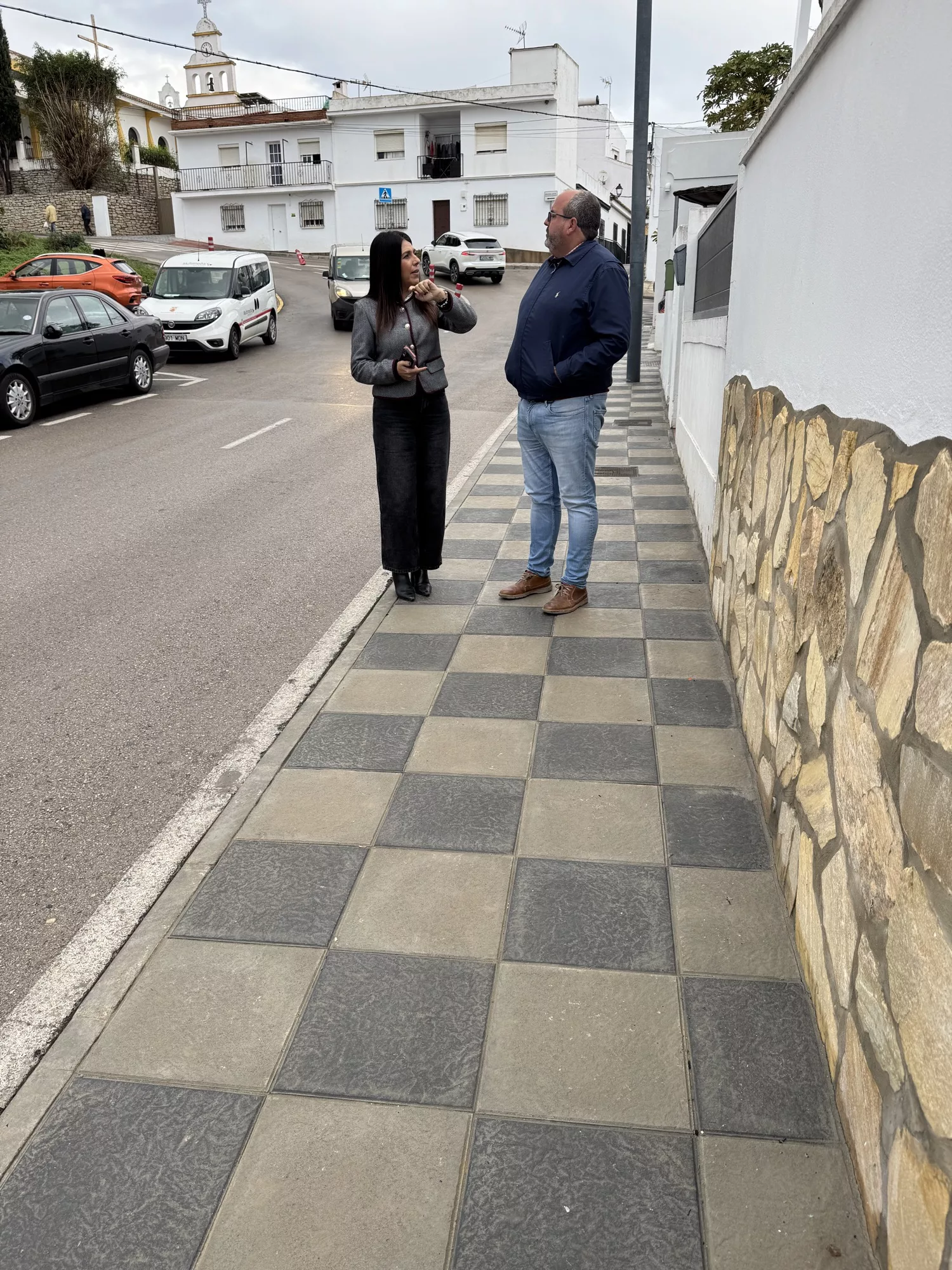 El alcalde accidental de San Roque, Óscar Ledesma, junto a la teniente de alcalde de Obras y Servicios, Belén Jiménez, han realizado una visita a las obras de acerado que se han efectuado en la calle Francisco Amado de Guadiaro.