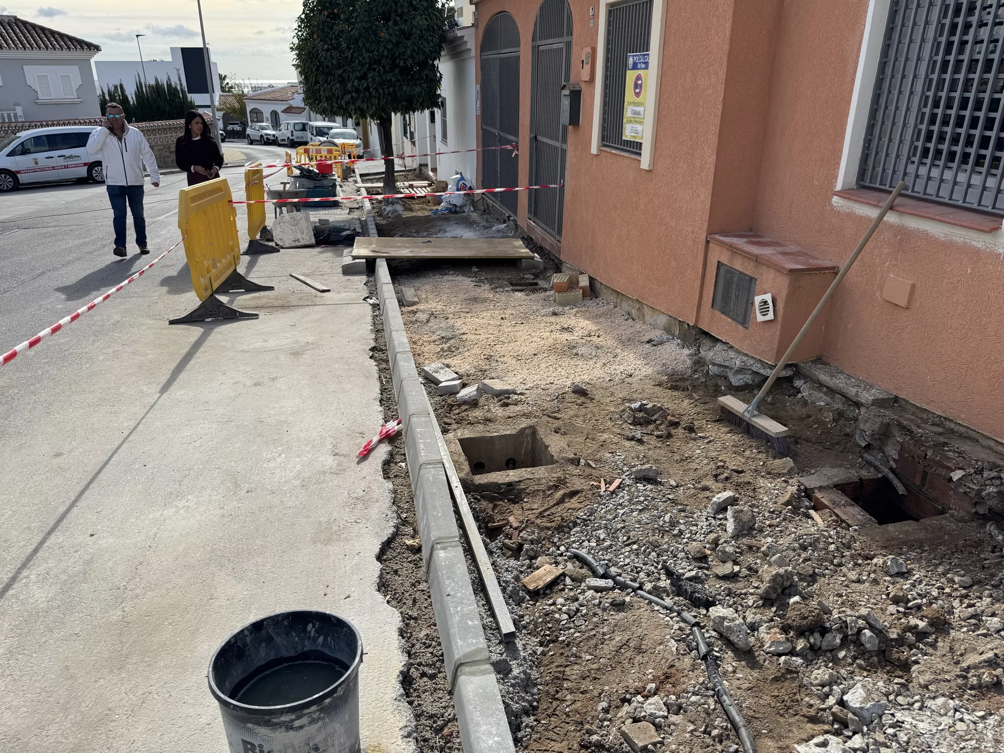 La teniente de alcalde de este departamento, Belén Jiménez, ha realizado una visita a la calle Las Palmeras en dicha urbanización, donde se ejecutan obras en un tramo de acera.