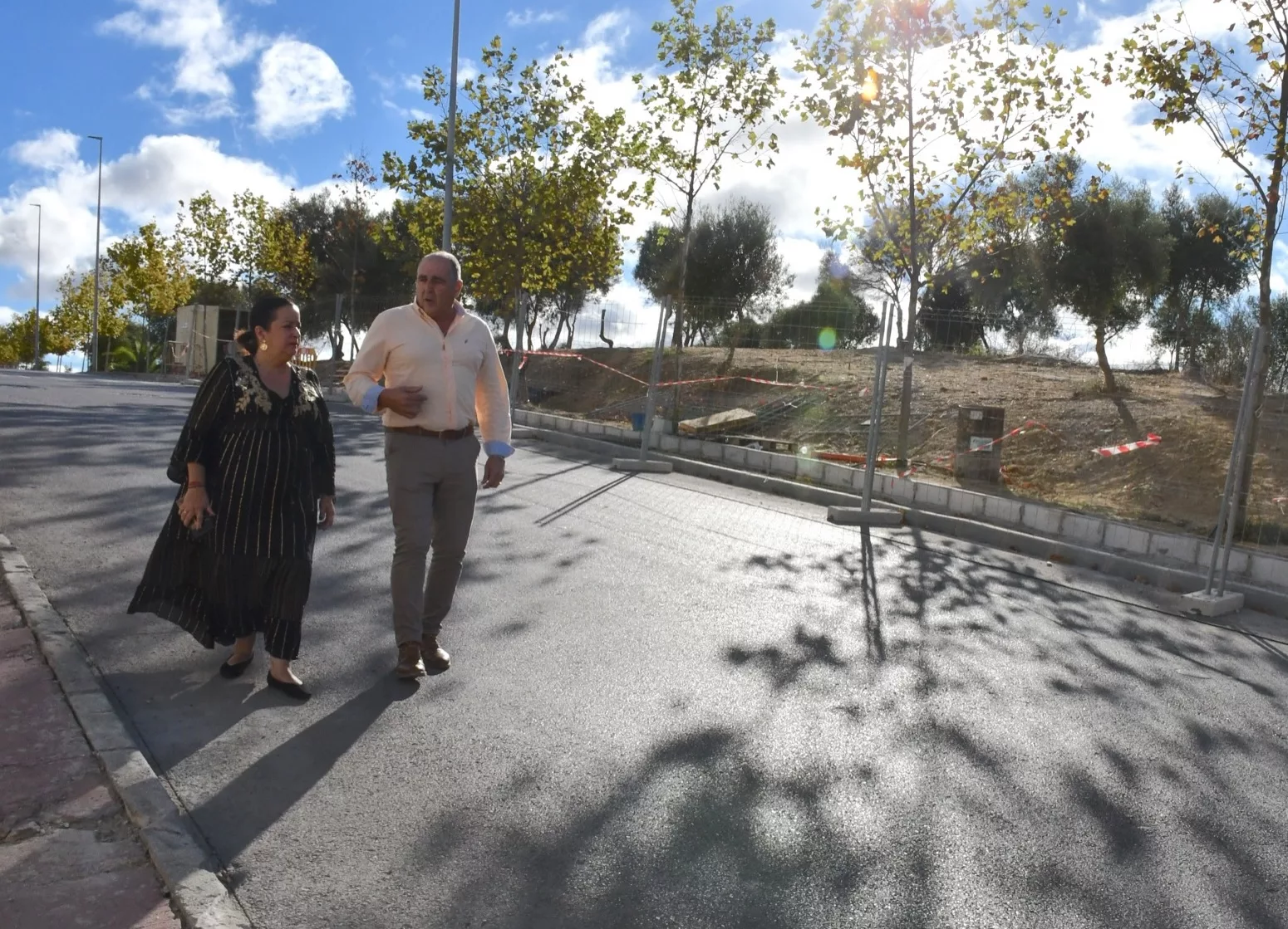 La teniente de alcalde delegada de Urbanismo, Maria del Mar Collado, junto al delegado responsable de la zona de Estación, Miraflores y Taraguilla, Juan Serván, visitaron las obras de acerado y luminaria realizadas en la calle Ébano, ubicada en el polígono La Pólvora, en Taraguilla.