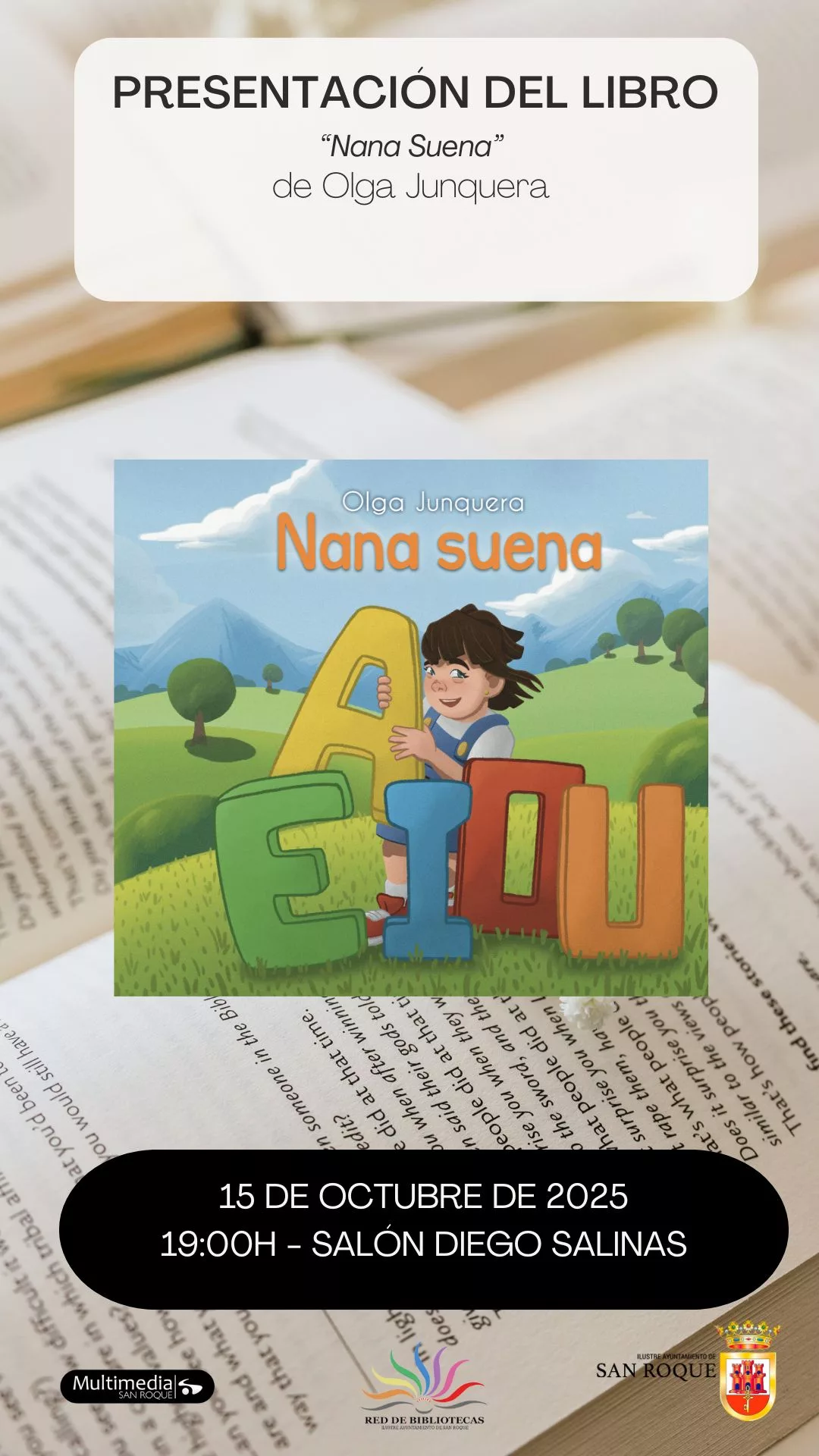 La escritora sanroqueña Olga Junquera presenta el 15 de octubre en el Salón de Actos de la Biblioteca su nuevo libro “Nana Suena”. La presentación dará comienzo a las 19 horas y está organizada por la delegación de Bibliotecas, que coordina la concejal Rocío Fernández.