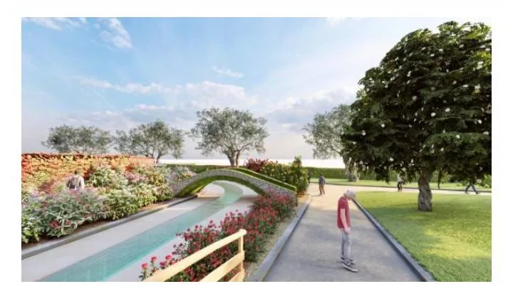 El proyecto de este parque temático contempla la dotación de dos estanques de agua unidos por un canal, caminos de paseo, figuras de arte topiario (vegetales), una zona de pic-nic, jardinería variada y un parque infantil. Como elemento especial se ejecutará un montículo artificial en cuyo talud frontal de colocará un gran cartel con el nombre del parque mediante letras de arte topiario.