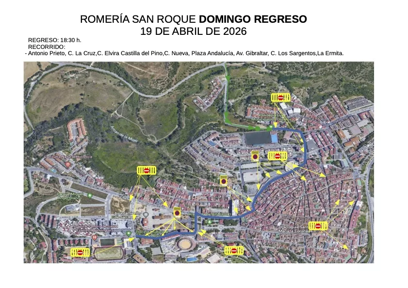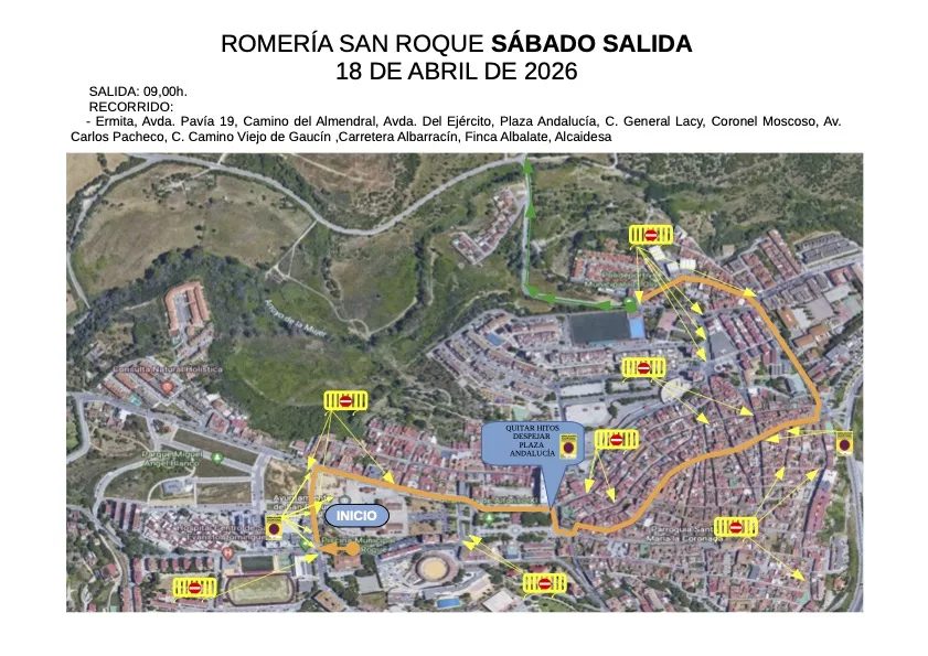 Estos cortes de tráfico y prohibición de aparcar afectarán, tanto sábado como domingo, a las inmediaciones de la Ermita de San Roque, así como al itinerario previsto.