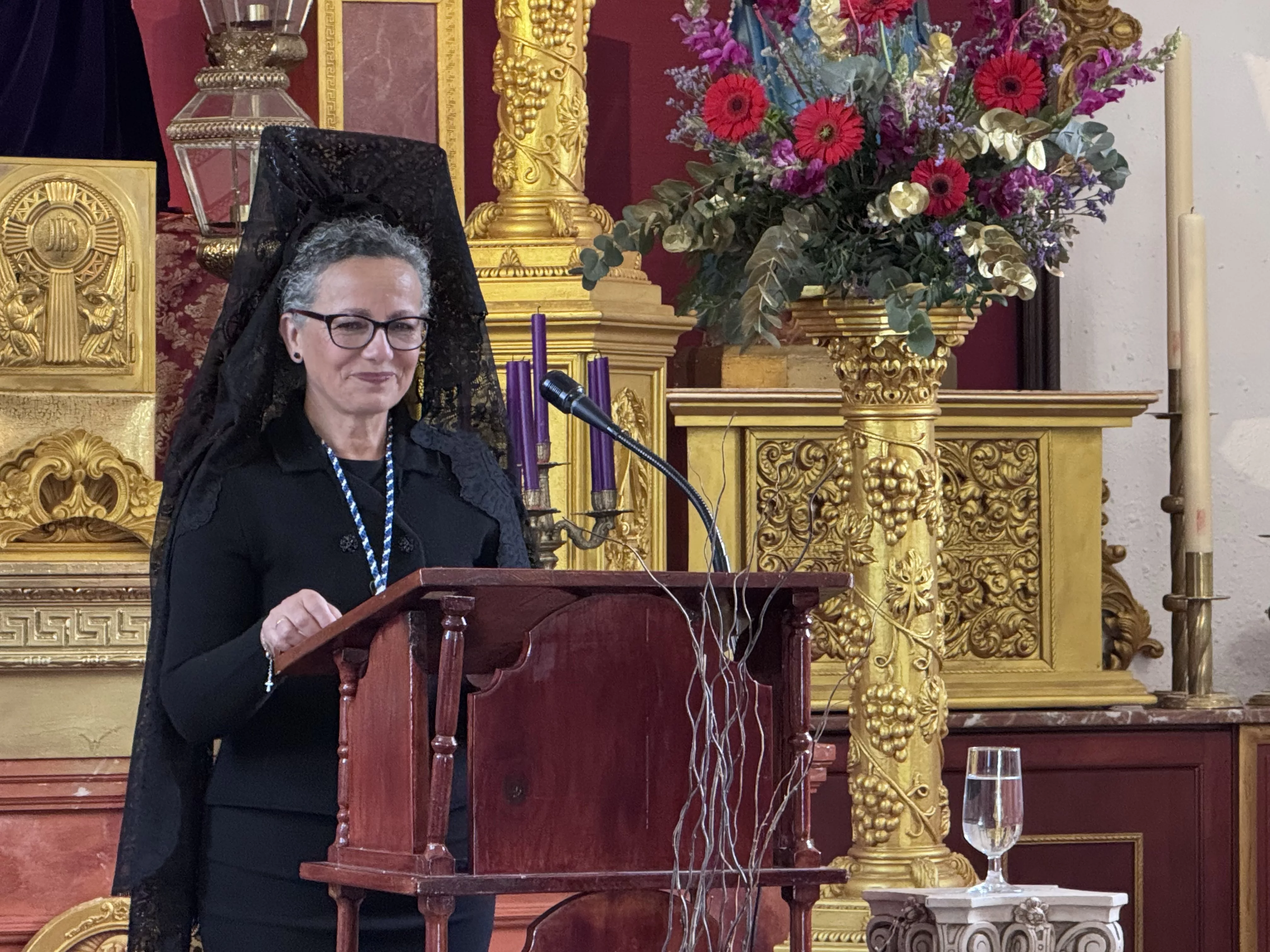 Maite Lara pronunció esta mañana el pregón de la Semana Santa de la Estación de San Roque 2025, que ha contado con la presencia de números fieles.