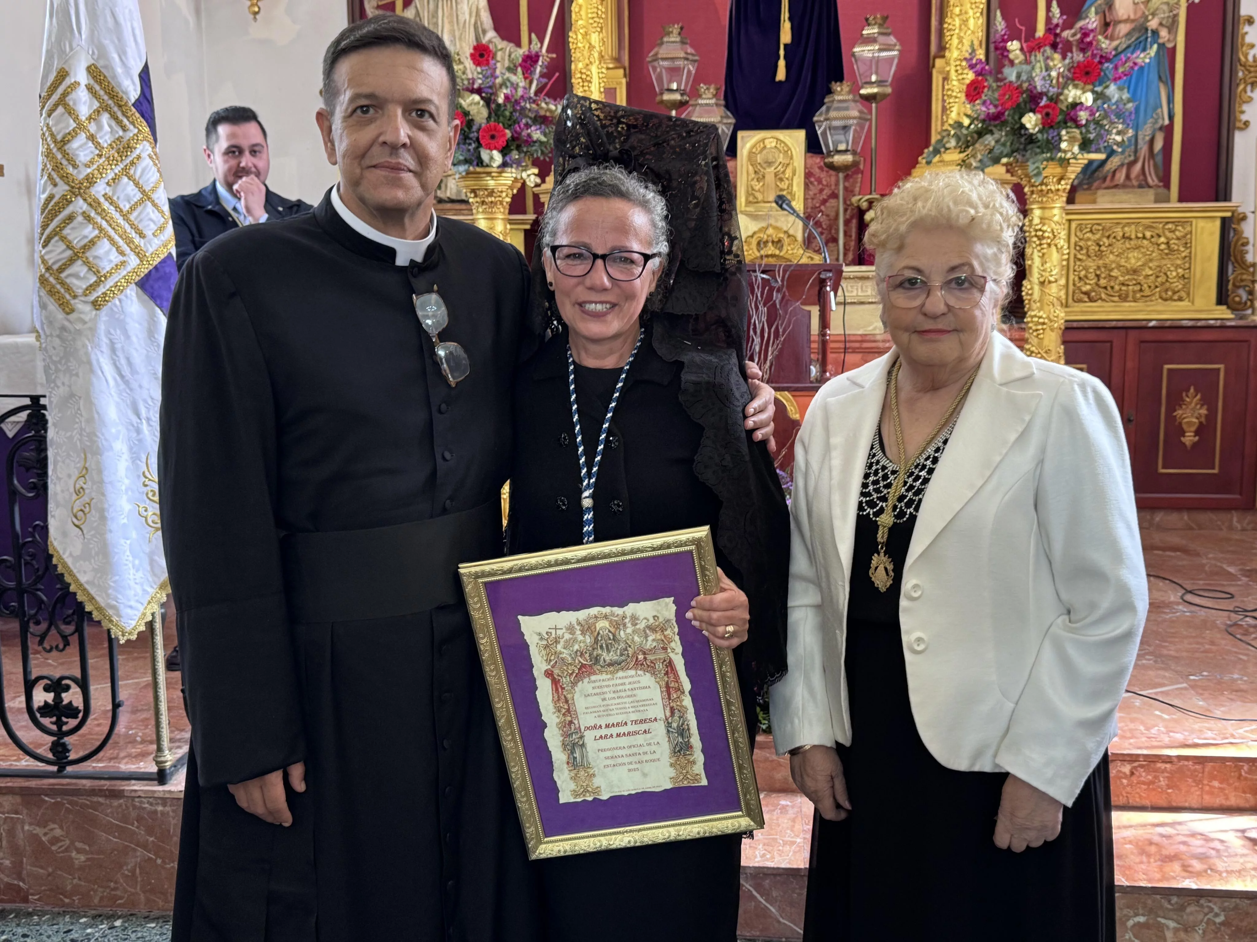 Al término del pregón, la presidenta de la Agrupación Parroquial Nuestro padre Jesús Nazareno y María Santísima de los Dolores, Regina Cabeza, entregó un recuerdo a la pregonera.