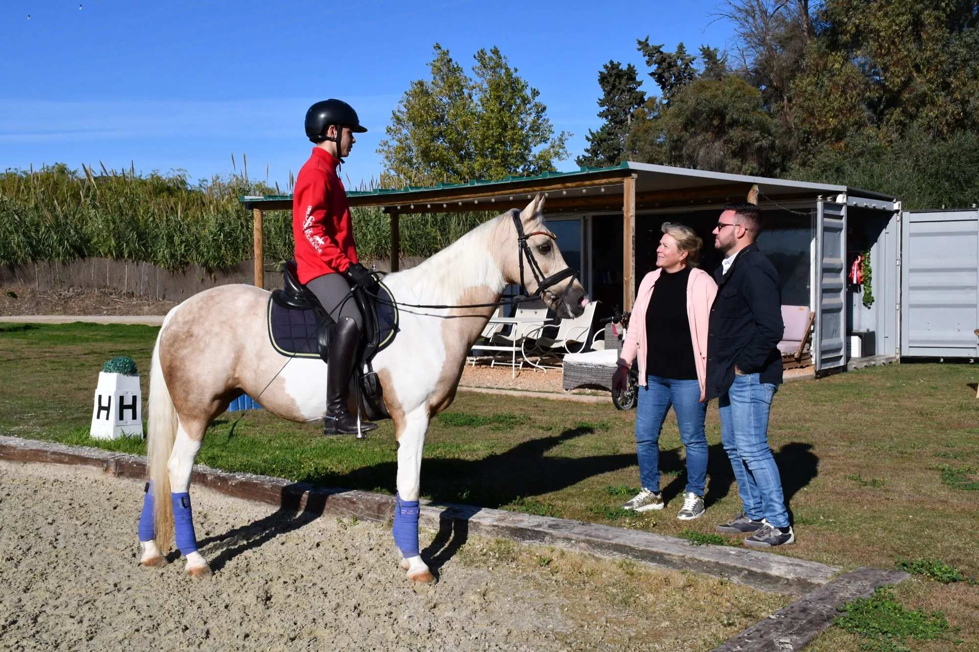 El teniente de alcalde delegado de Deportes, Fernando Vega, y la responsable de la zona del Valle del Guadiaro, Eva Gil, visitaron las instalaciones de la academia de doma Dressage Sotogrande, en San Enrique. Así, se reunieron con Curro Ramírez Morales, el joven de 15 años perteneciente a la escuela de equitación, que este año ha sido galardonado como campeón de Andalucía y segundo de España en la categoría de doma clásica Juvenil 0.