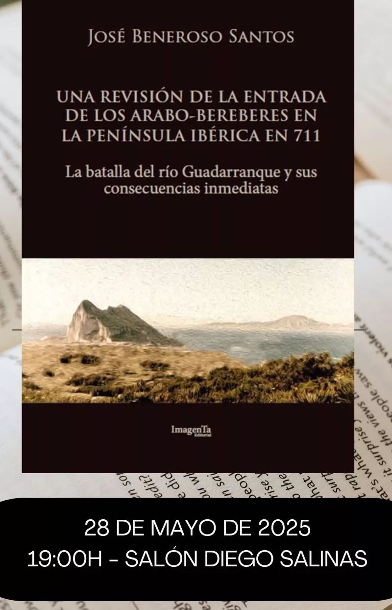 El próximo miércoles 28 de mayo a las 19.00 horas, el escritor e historiador linense, José Beneroso Santos presenta su obra “Una revisión de la entrada de los arabo-bereberes en la Península Ibérica en 711”. La cita será en el salón de actos del edificio Diego Salinas, la obra se trata la batalla del río Guadarranque y sus consecuencias inmediatas. Esta obra es una síntesis de su tesis doctoral del mismo título, defendida y calificada con sobresaliente cum laude.