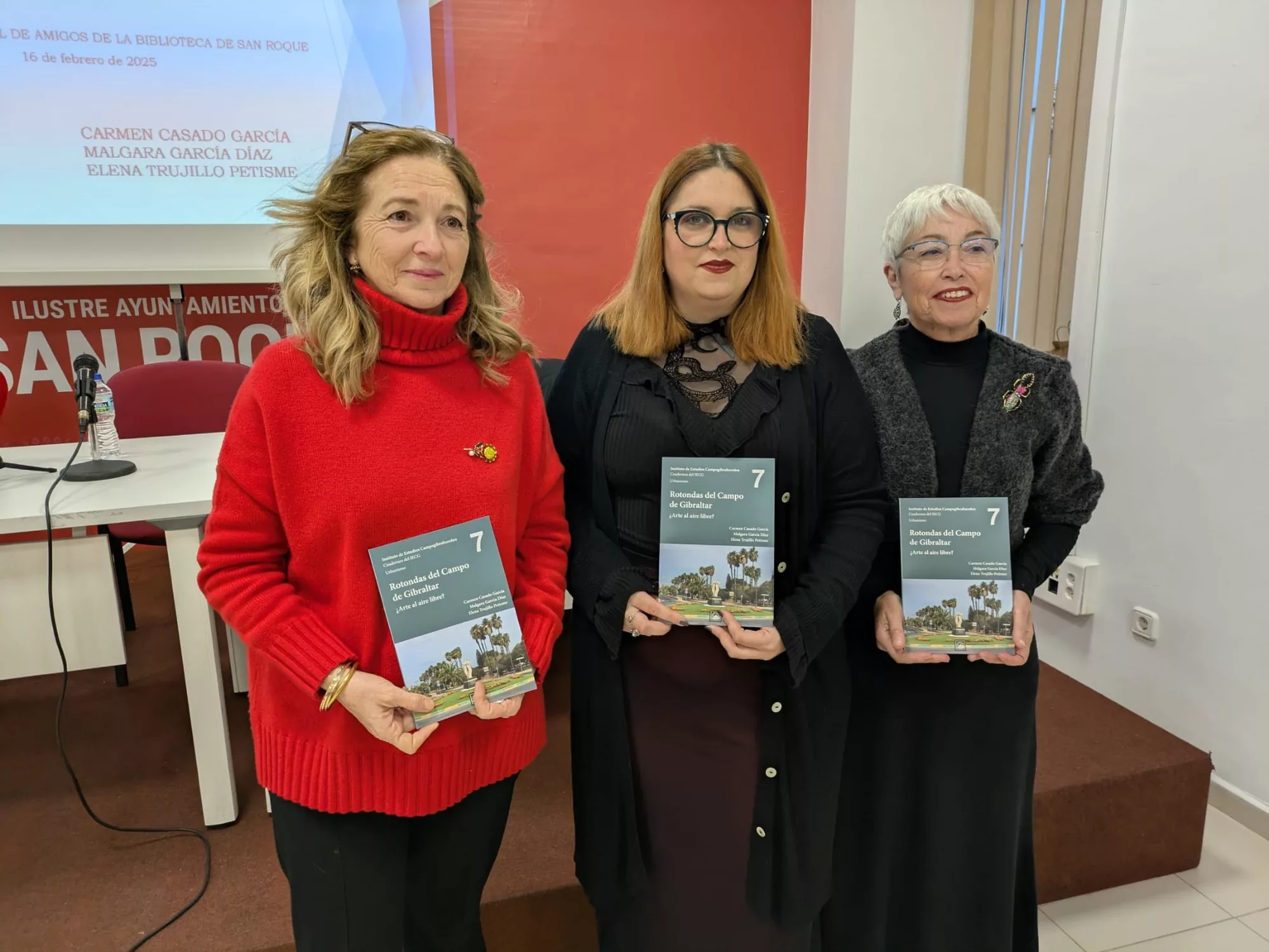 Carmen Casado, Malgara García y Elena Trujillo presentaron en la tarde de este jueves en el Edificio Diego Salinas el cuaderno del IEGC titulado “Rotondas del Campo de Gibraltar”, que se centra en 42 glorietas de la comarca y del Peñón que cuentan con algún elemento que las dota de una especial singularidad. Organizaba la Asociación Amigos de la Biblioteca de San Roque, con la colaboración de la Delegación de Bibliotecas, que dirige la concejal Rocío Fernández.
