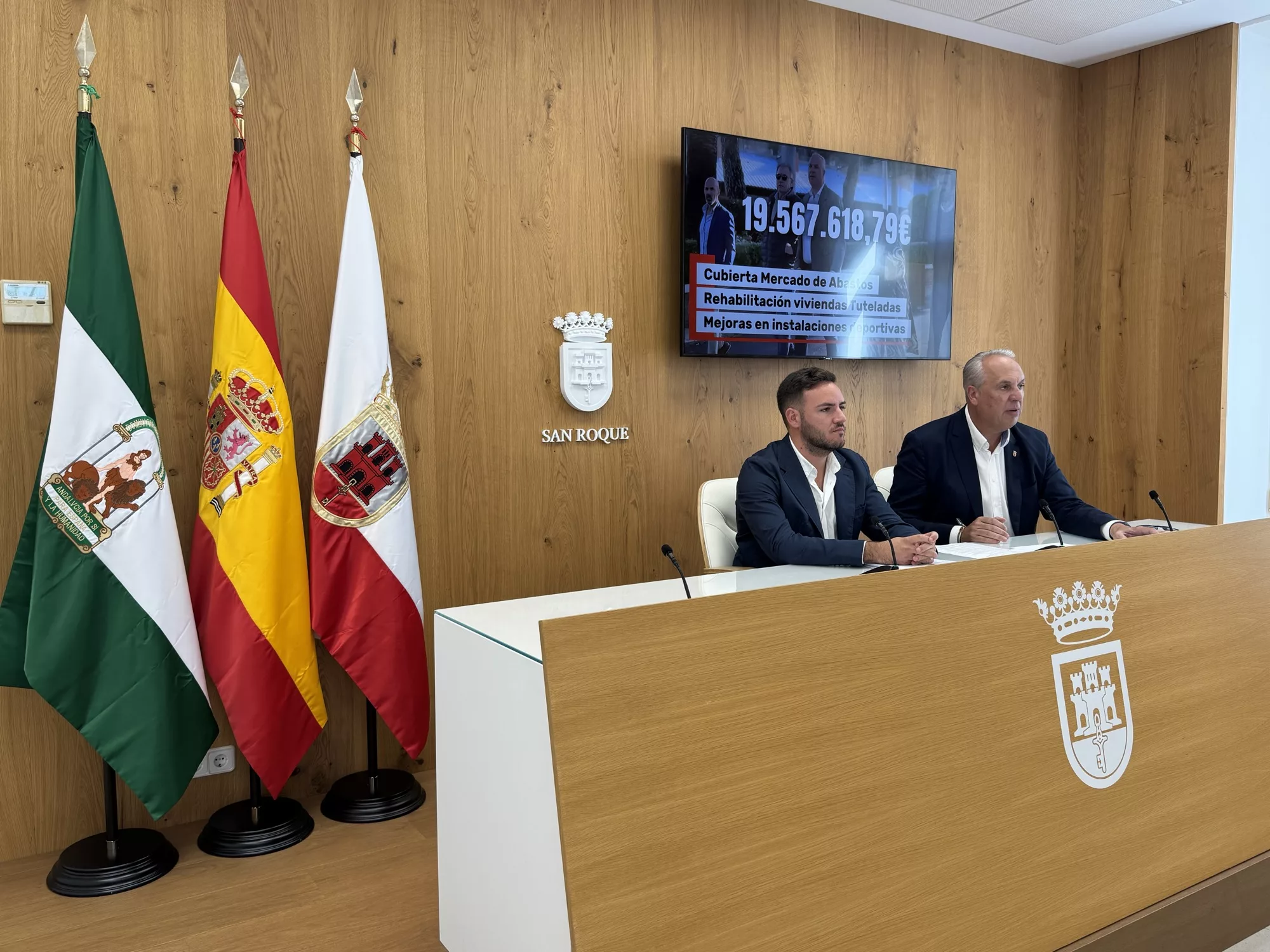 El alcalde de San Roque, Juan Carlos Ruiz Boix, y el teniente de alcalde de Hacienda, Fernando Vega, han presentado el documento inicial del Presupuesto General del Ayuntamiento para 2026. Un año más, San Roque es de los primeros consistorios españoles en hacer públicas sus cuentas para el próximo ejercicio. La cifra final supera los 107,6 millones de euros, 14,2 millones más que en el ejercicio actual (un incremento del 15%).