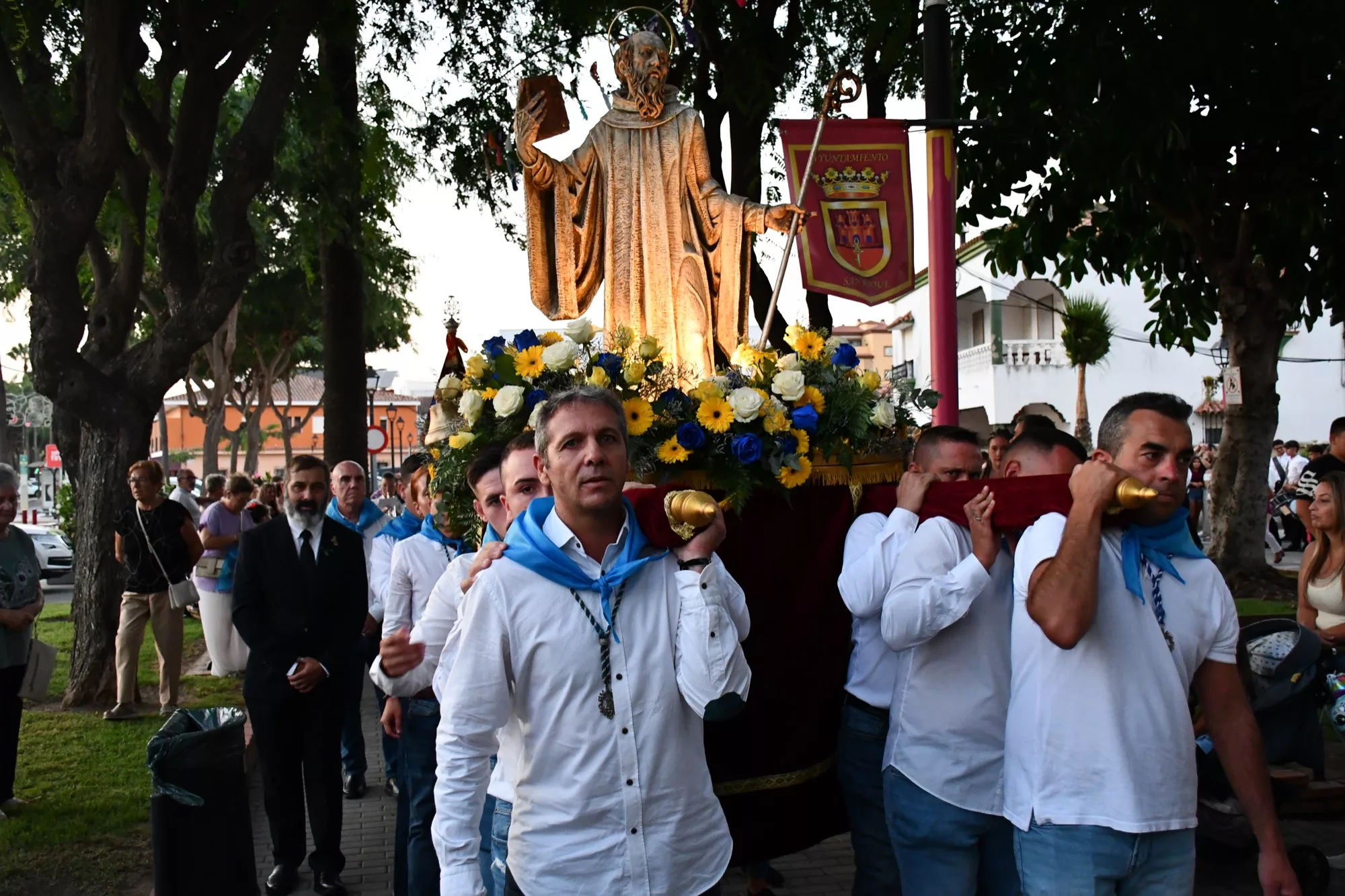 Luego se dio inicio a la procesión en sí, que contó con música de la Agrupación Musical Virgen de los Remedios de Estepona. Este año el recorrido varió respecto a ediciones anteriores, ya que la comitiva tomó en primer lugar la dirección hacia la Plaza de San Bernardo.
