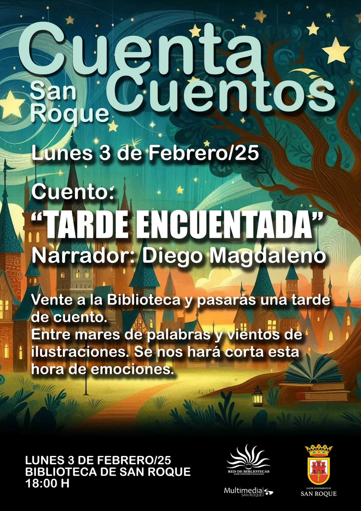 En esta ocasión, el público familiar que asista a la actividad disfrutará de una “Tarde encuentada”. “Vente a la biblioteca y pasarás una tarde de cuento. Entre mares de palabras y vientos de ilustraciones. Se nos hará corta esta hora de emociones”.