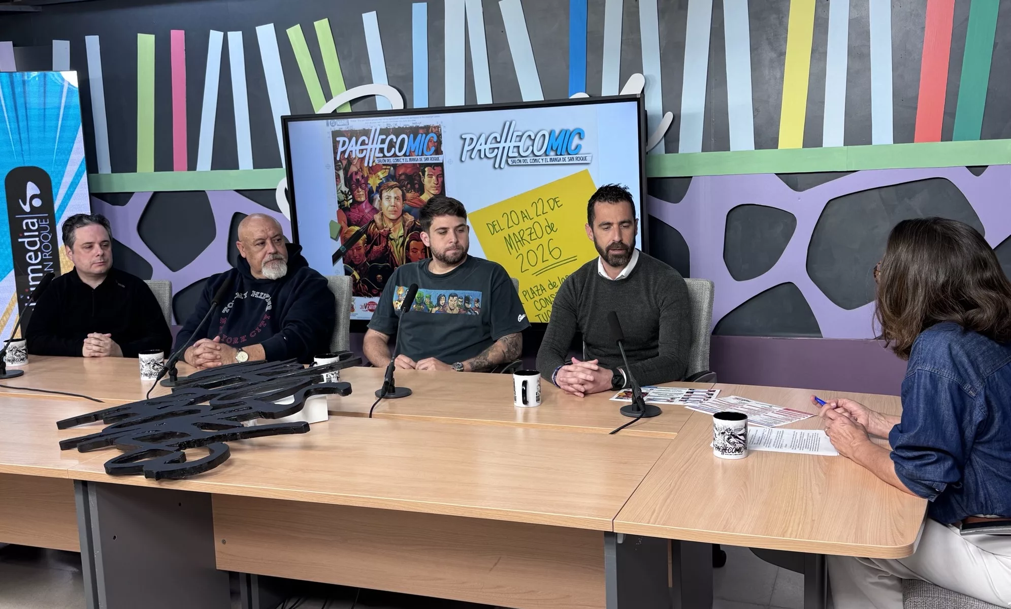 La radio Televisión pública de San Roque, Canal San Roque RTVM, ha dedicado programas especiales para promocionar Pachecomic, el salón del Comic y el Manga, que se va a desarrollar desde este viernes 20 en la plaza de las Constituciones. Hoy martes, Día Internacional del Cómic, en los programas han intervenido el teniente de alcalde de Juventud, David Ramos; el hijo de Carlos Pacheco, Alex Pacheco; Jesús Merino y Juan Torres, y han sido entrevistados por Roberto Uceda, en la radio, y Belén López, en la televisión.