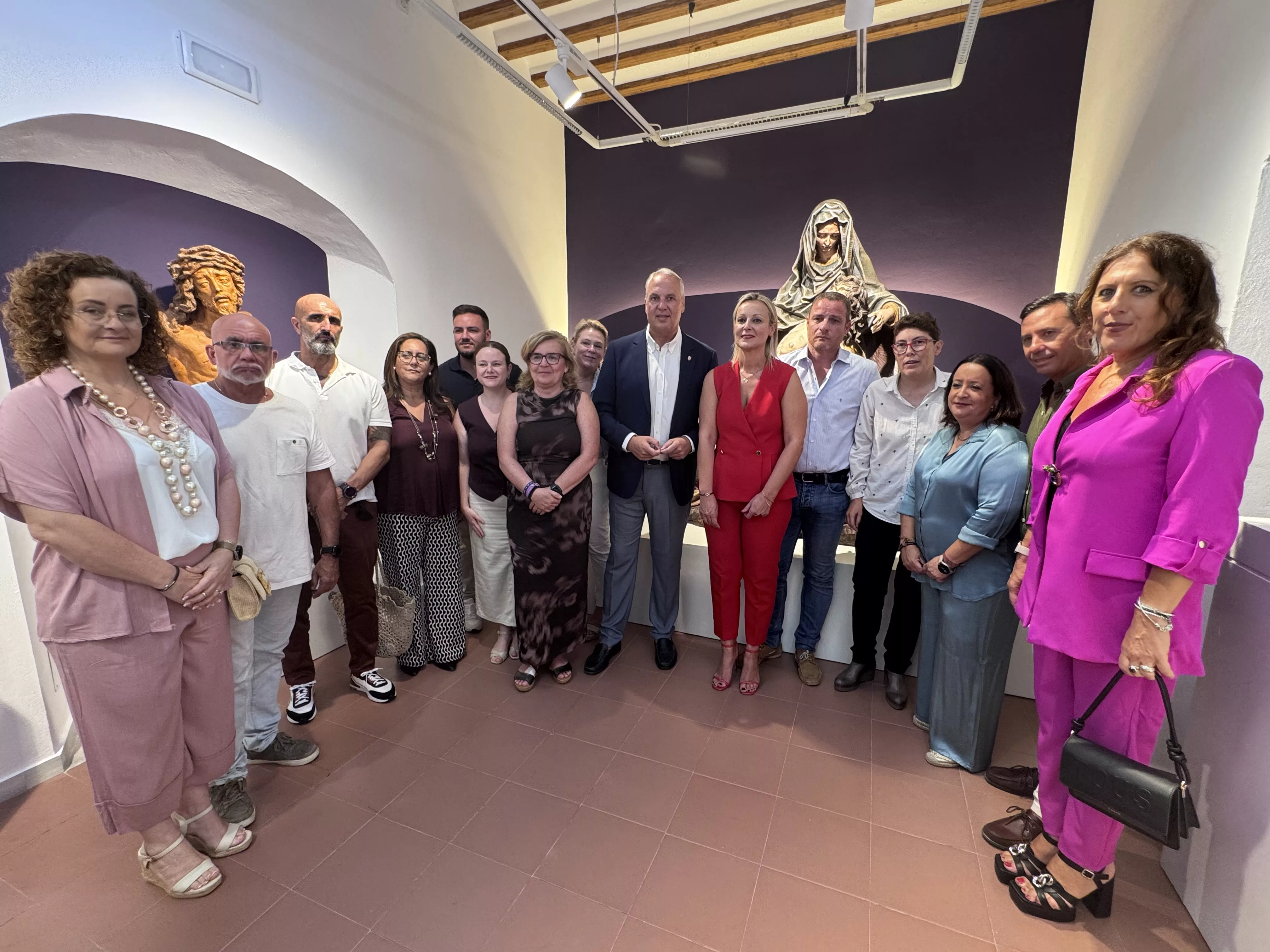 El alcalde de San Roque, Juan Carlos Ruiz Boix, junto a la teniente de alcalde de Cultura, Ana Ruiz, otros ediles de la Corporación y representantes de Hermandades y Cofradías del Campo de Gibraltar y de otras localidades andaluzas han participado este jueves en la reapertura de la Exposición Permanente del imaginero sanroqueño en el Palacio de los Gobernadores. Entre las principales novedades de la sala, el relieve que realizó a finales de los años 50 para el Oratorio-Mausoleo de San Felipe Neri.