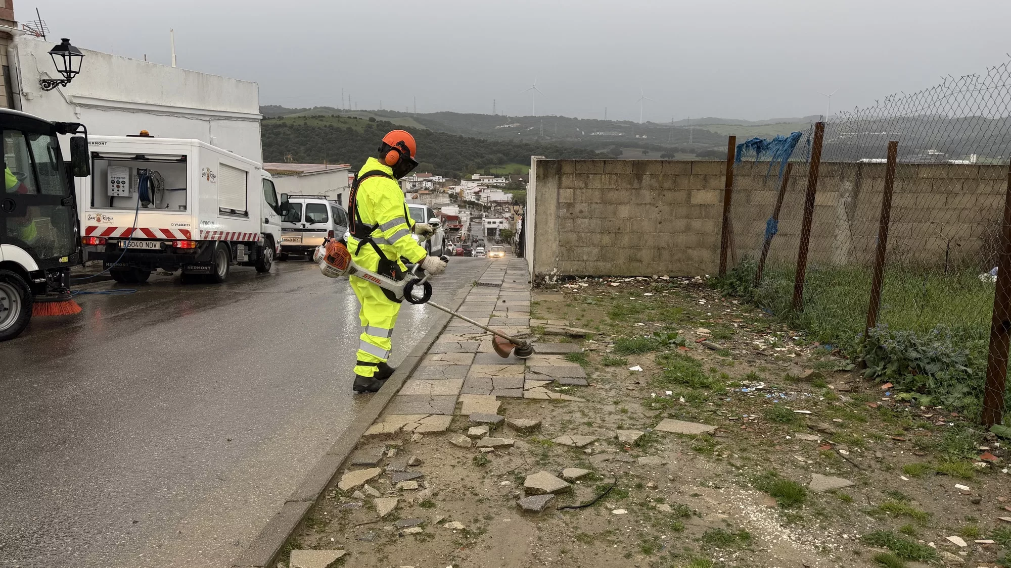 En esta jornada de miércoles, el equipo se ha centrado en la parte más alta de la calle Villa Alta de la Estación de San Roque, vía que desemoboca en el mercado de abastos, donde se han empleado a fondo. Allí se ha realizado la tradicional limpieza manual, aunque complementada por barredora mecánica y el empleo de agua no potable para la suciedad más incrustada.