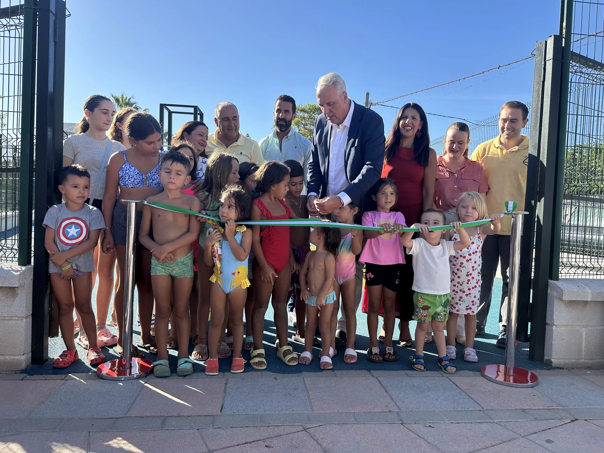 El Parque Infantil Jesulete, situado en Guadarranque, ha sido reinaugurado este jueves una vez concluida la remodelación de estas instalaciones, muy usadas tanto por los pequeños de la barriada como por los que cada verano se bañan en su playa, situada a pocos metros.