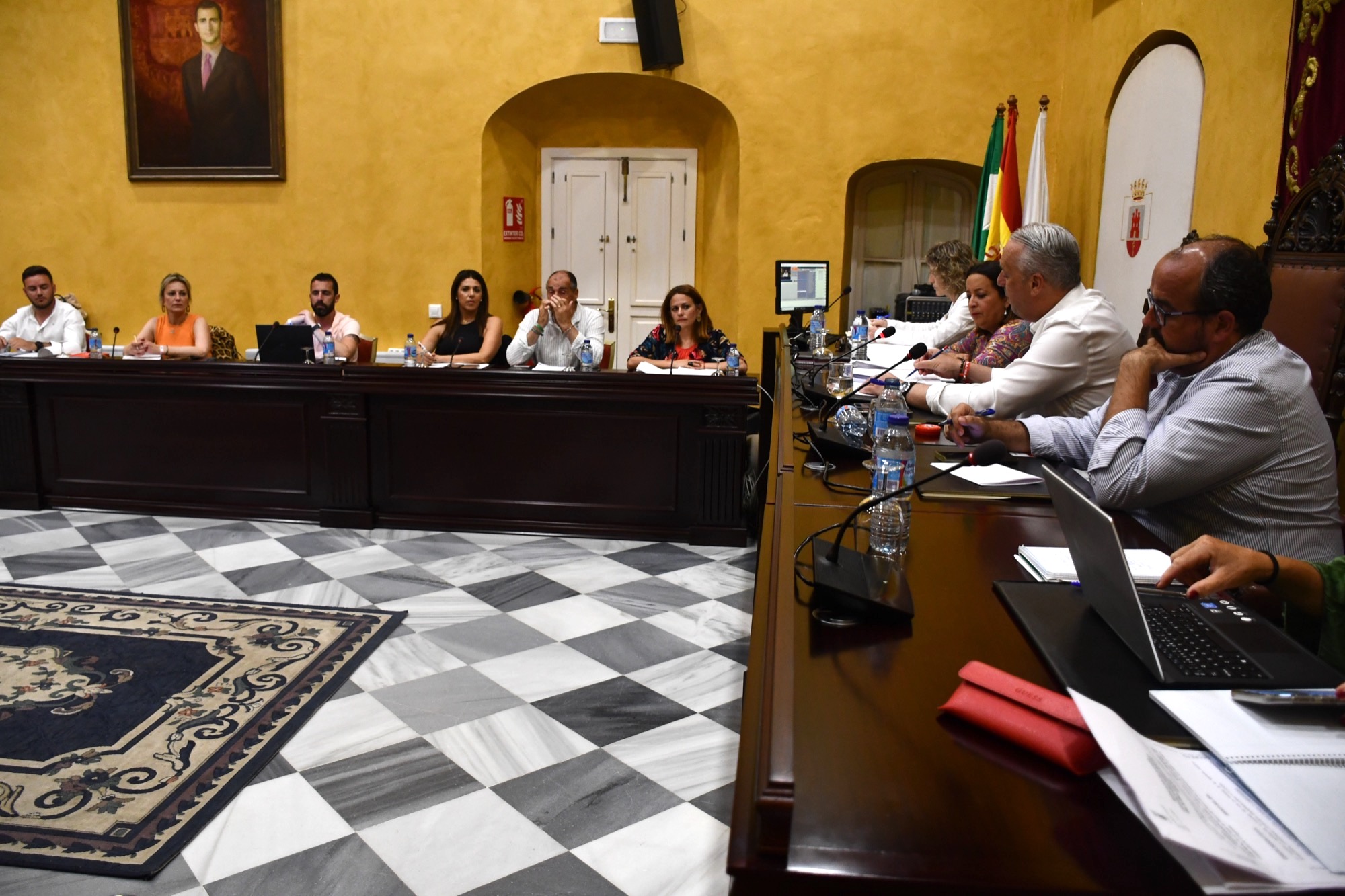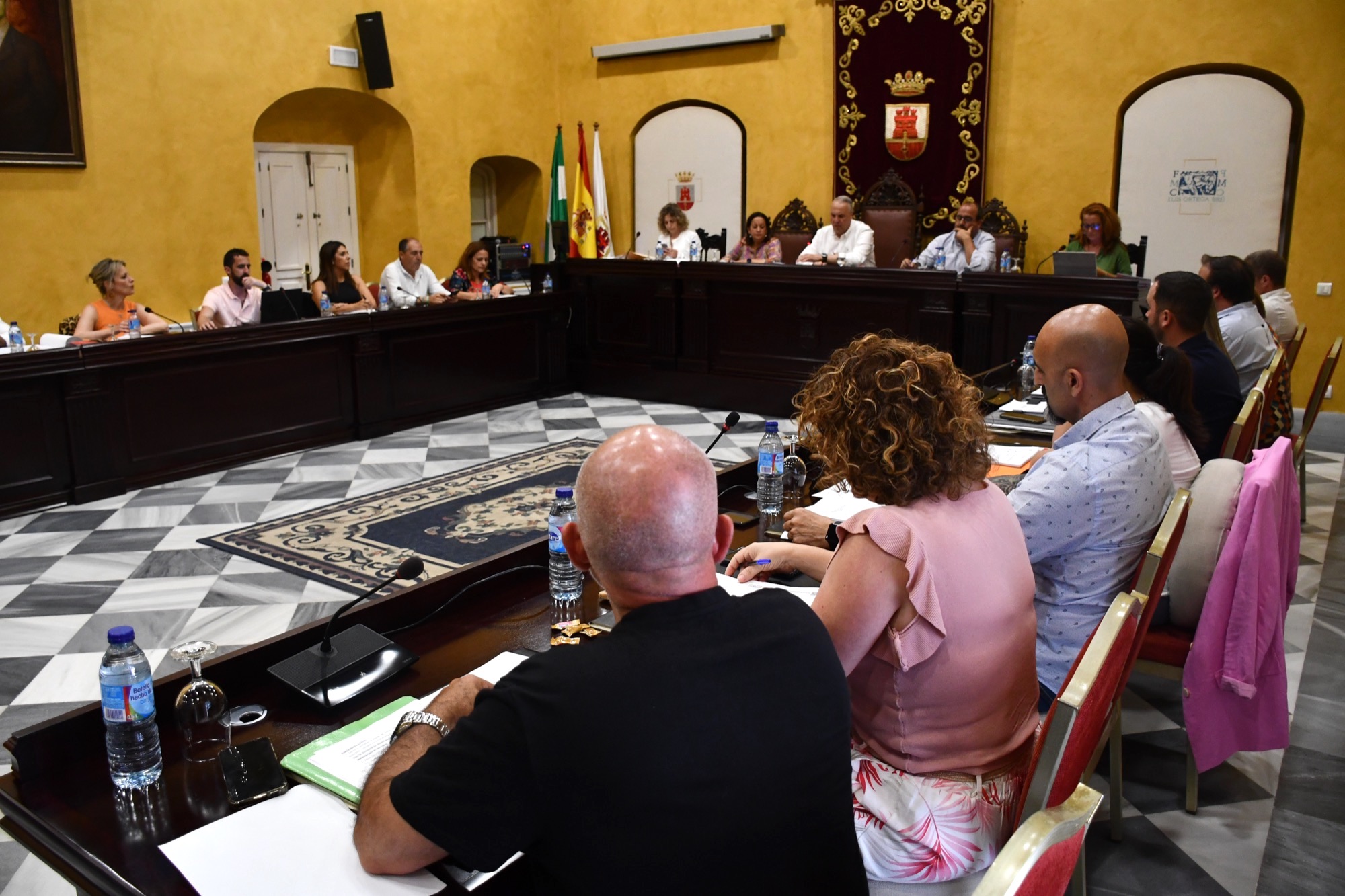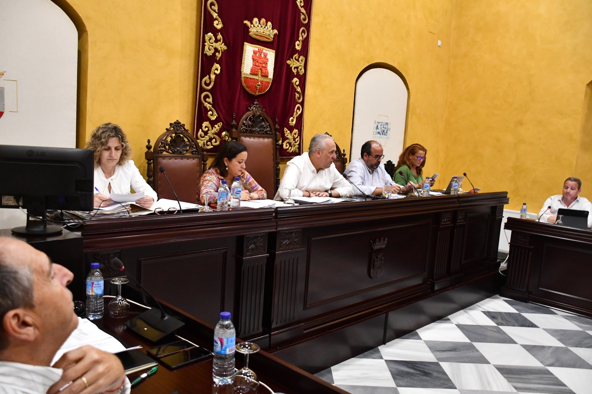 El Salón de Sesiones del Palacio de los Gobernadores ha acogido en la tarde de este jueves el Pleno Ordinario de la Corporación correspondiente al mes de junio, en el que se aprobó destinar parte de los ingresos de un convenio con Cepsa a la compra de unos terrenos para ampliar el recinto ferial de Guadiaro. Se excusó la ausencia de la edil Rocío Fernández (PSOE), de baja por maternidad.