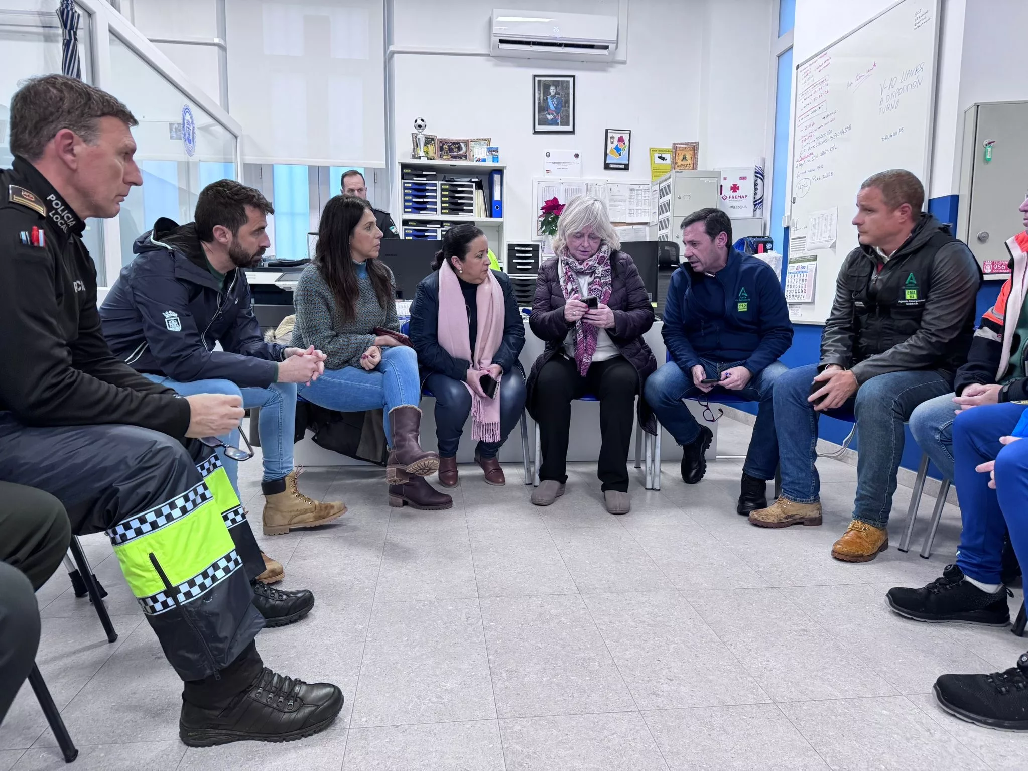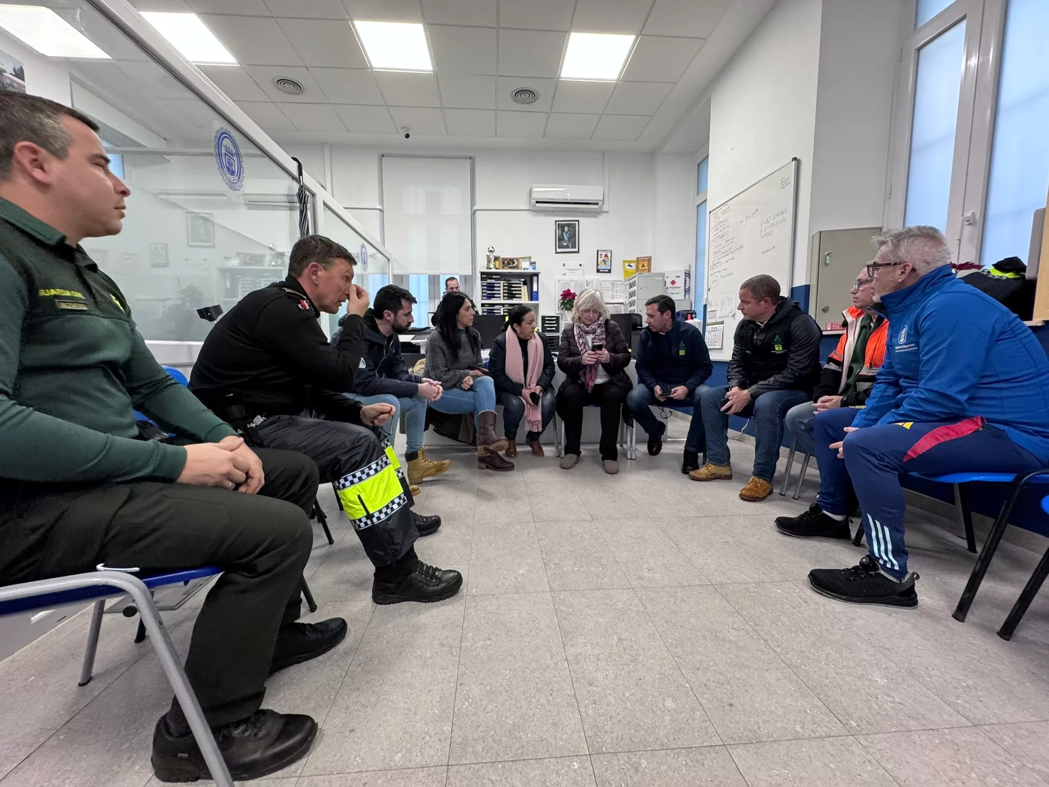 El encuentro está presidido por la alcaldesa accidental, Maria del Mar Collado, junto a los tenientes alcalde, David Ramos y Belen Jiménez, otros ediles de la Corporación Municipal, responsables de Policía Local, Guardia Civil, Protección Civil y Bomberos, además del subdelegado de la Junta en la comarca, Javier Ros.