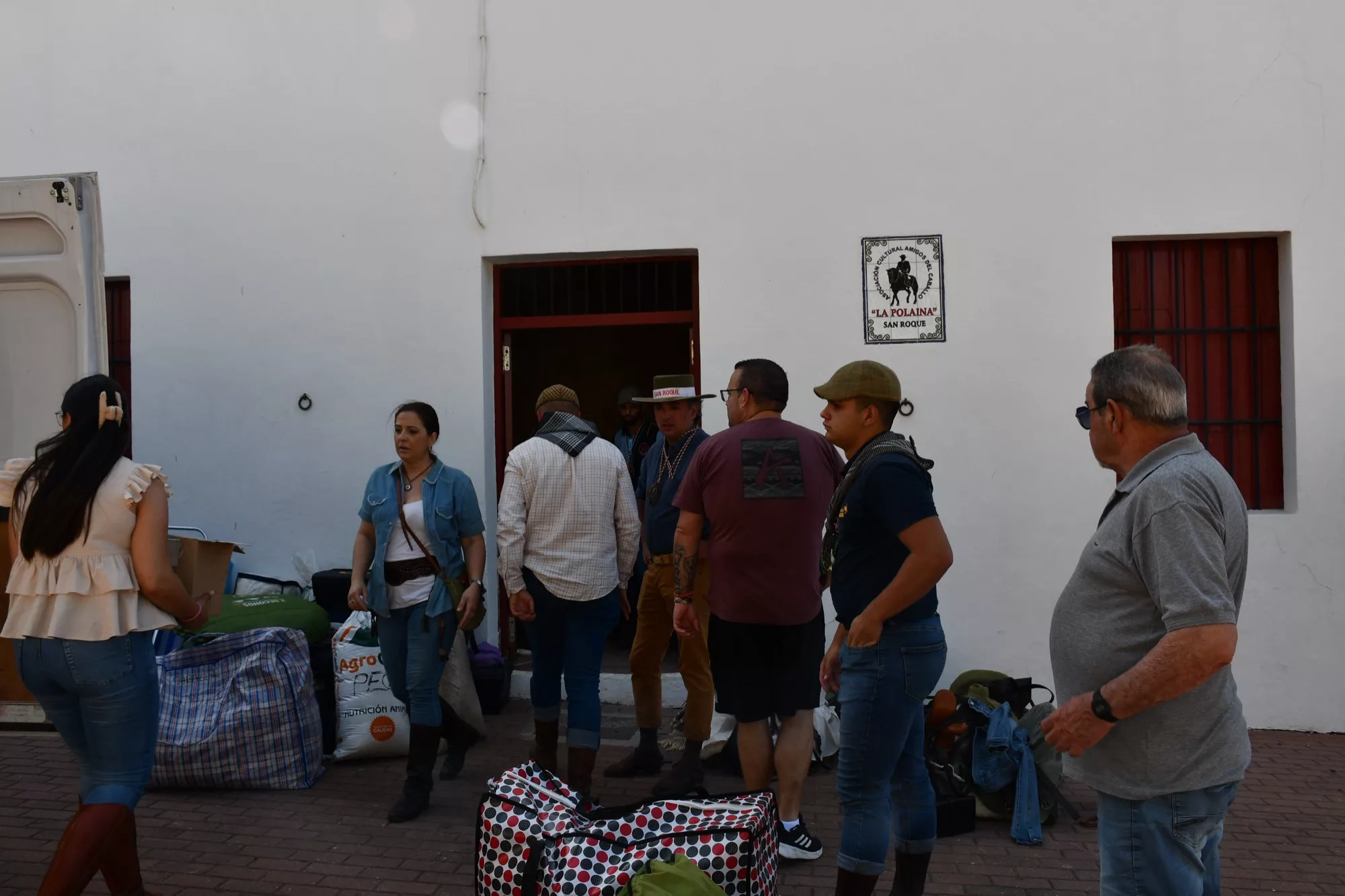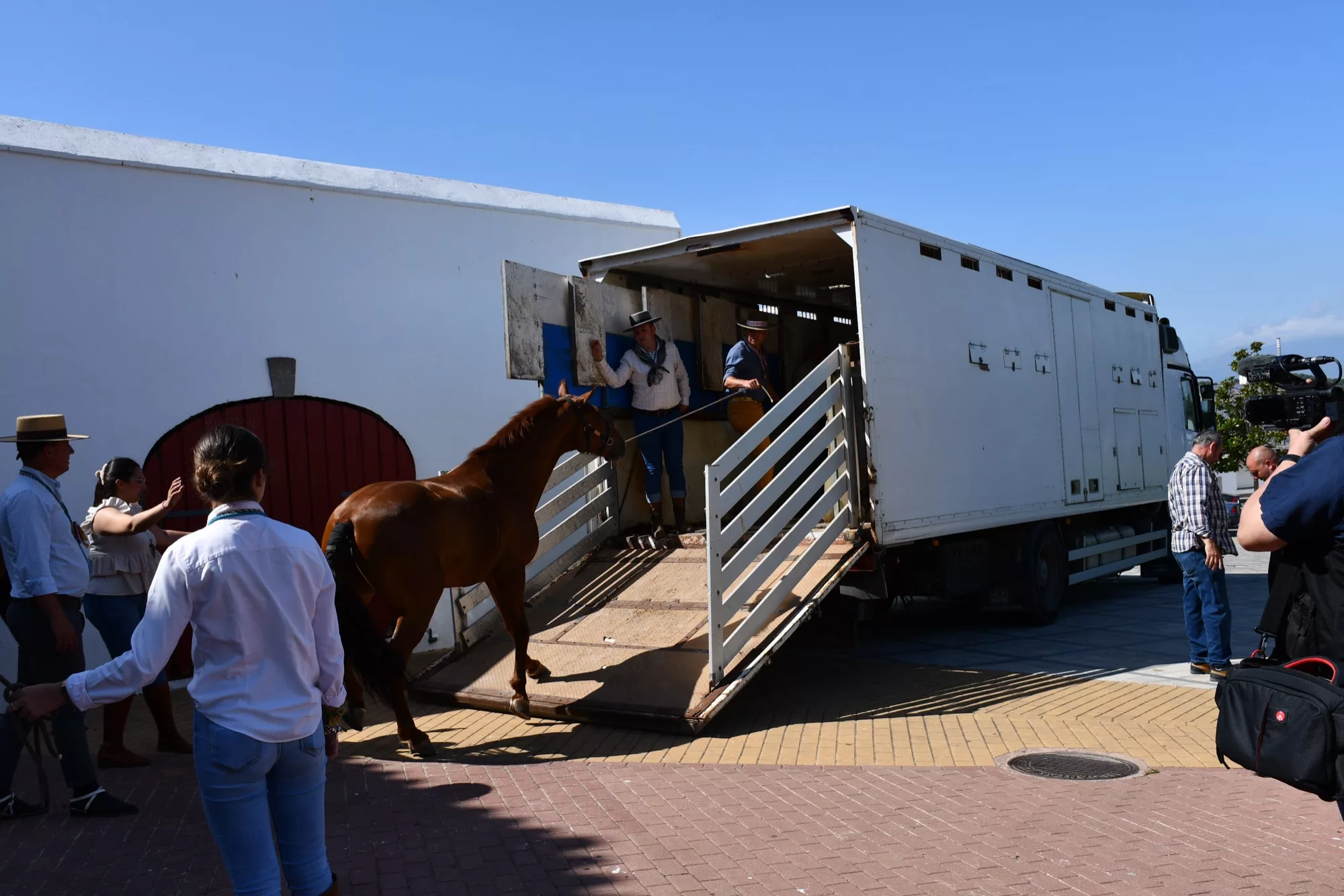 Los alrededores de la Plaza de Toros de San Roque han sido el escenario donde se han llevado a cabo todos los preparativos, entre ellos, el embarque de los caballos en el camión destinado a su transporte, junto al numeroso avituallamiento dispuesto por los romeros sanroqueños que han pasado esta mañana de lunes preparando todos los detalles para vivir intensamente el camino hacia la aldea, así como la romería durante el próximo fin de semana.