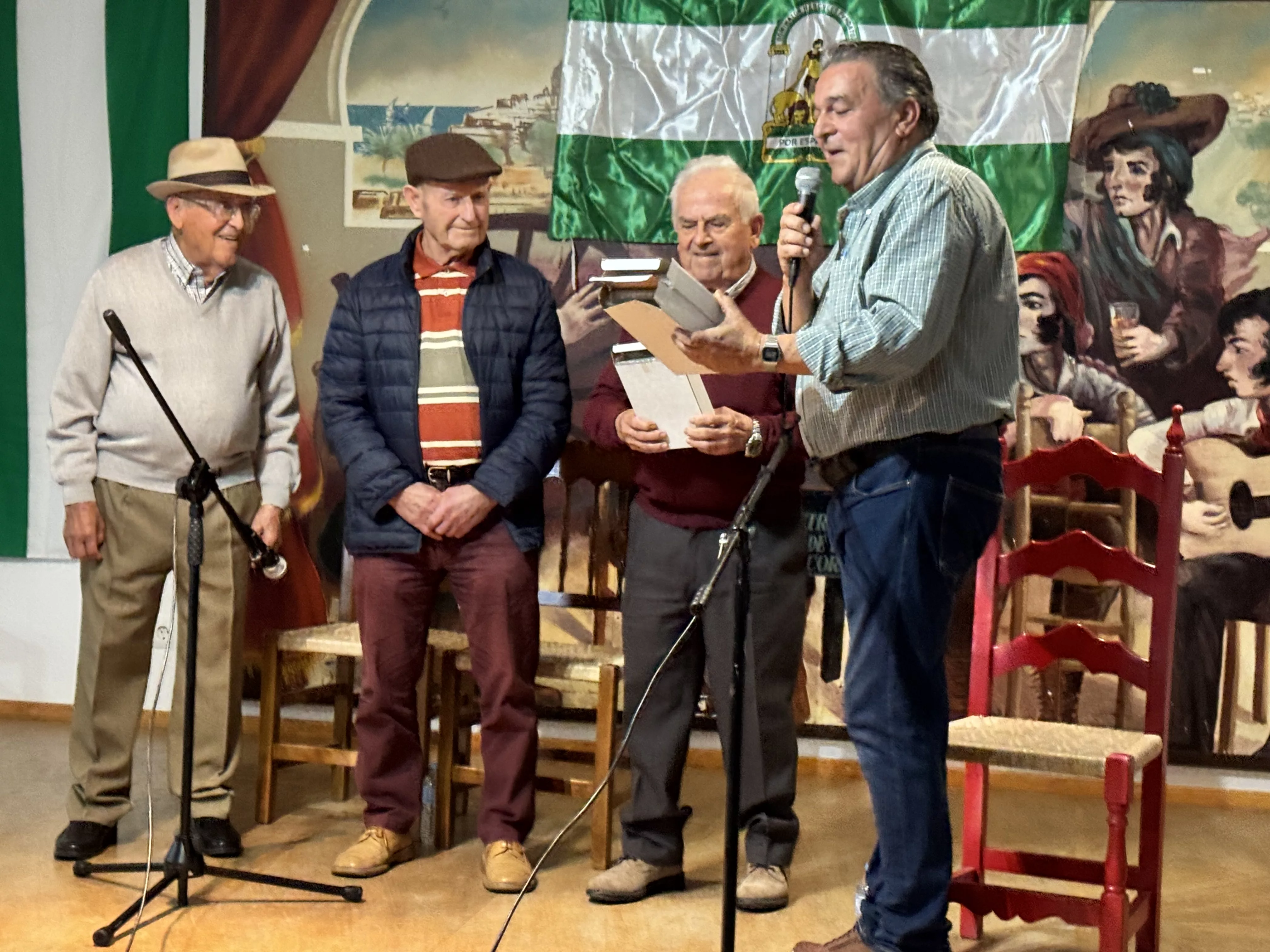 Al inicio del acto se le entregaron unas placas a tres antiguos socios de la Peña como agradecimiento por tantos años de fidelidad con la Peña. Quienes recibieron este reconocimiento fueron Antonio Serrano, Francisco Lara y Francisco Calvo.