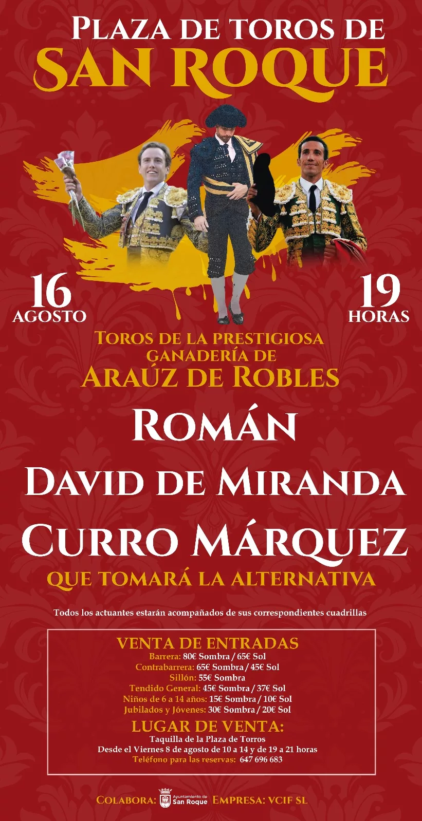 En la tarde de ese sábado a las 19:00h tendrá lugar la  Extraordinaria Corrida de toros. A las 23:00h abrirá de nuevo sus puertas la Caseta Municipal, que estará amenizada por nuestra orquesta y a partir de la 1 de la madrugada, las 01.00 horas, se contará con la actuación musical de «Álvaro García”.