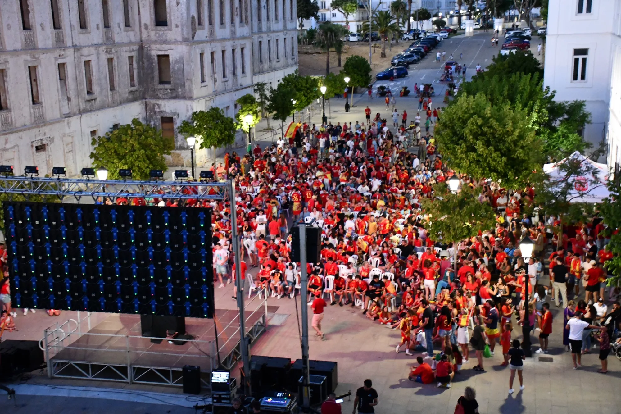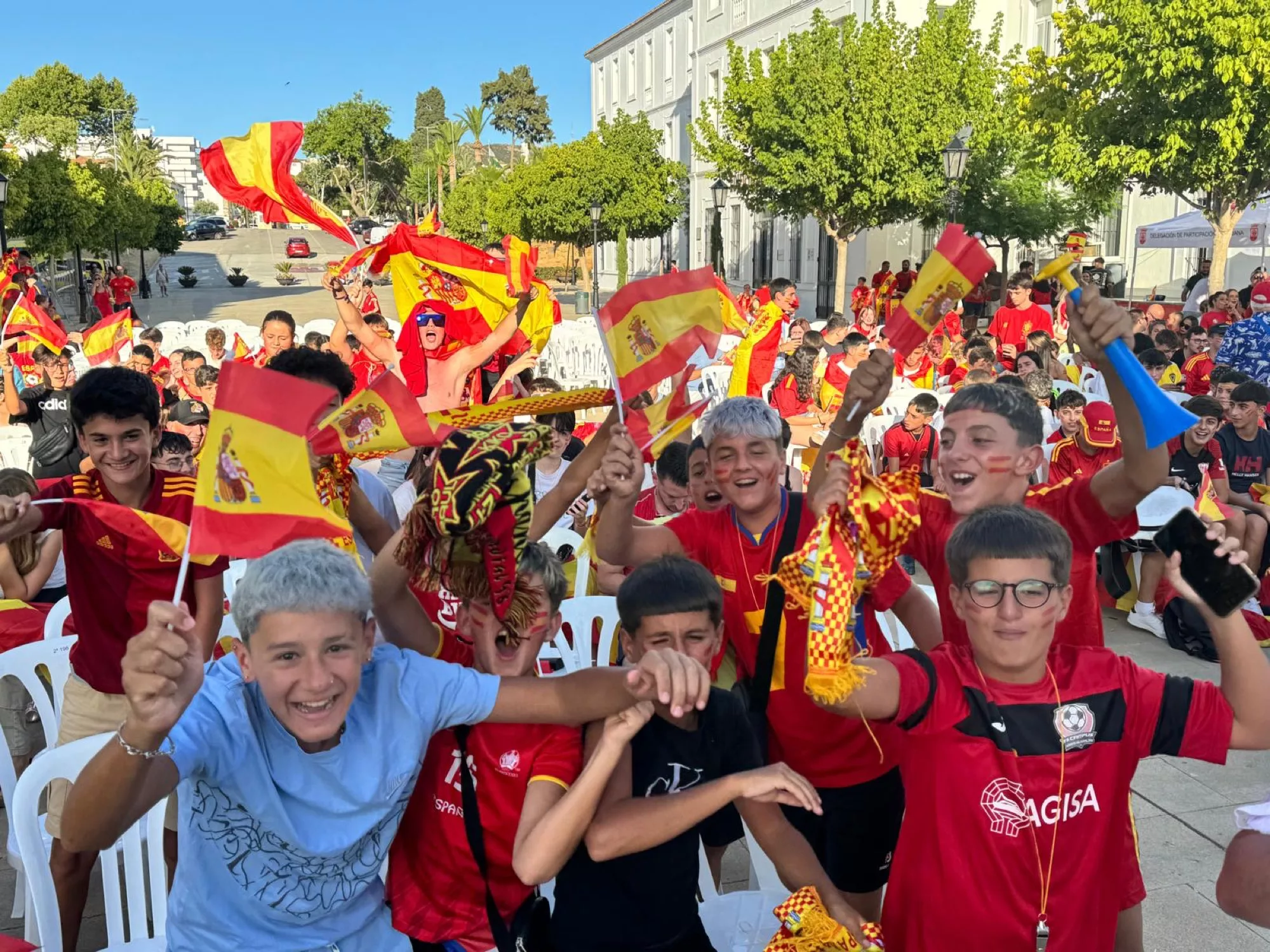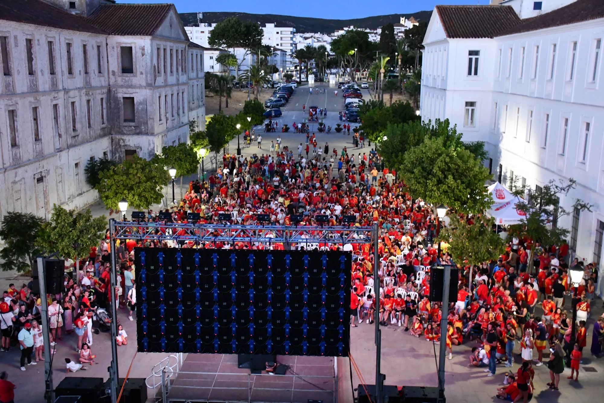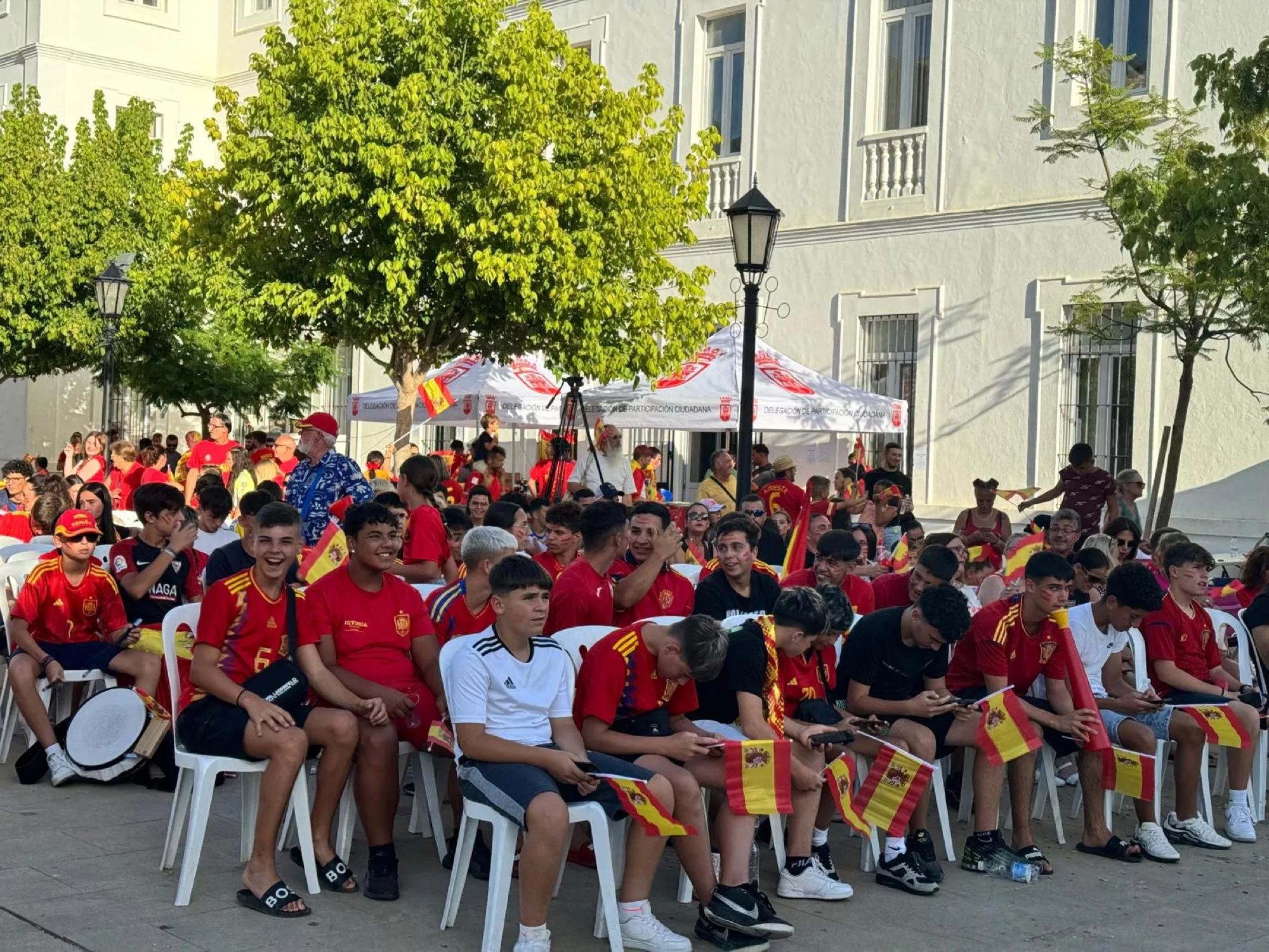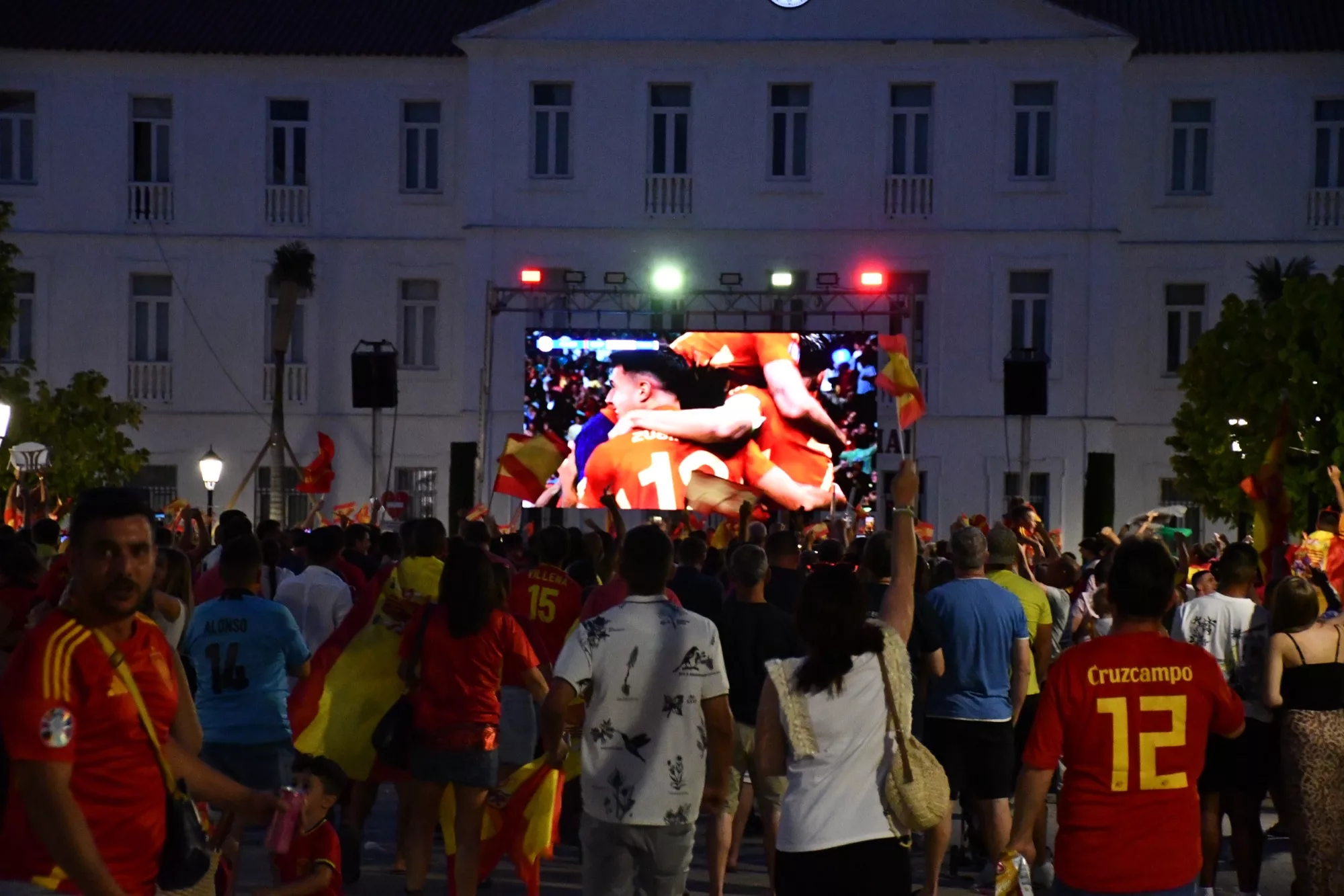 Miles de personas, la mayoría vistiendo los colores de la Selección Española, han apoyado este domingo a La Roja en la sanroqueña Plaza de las Constituciones, y han celebrado por todo lo alto la victoria sobre Inglaterra del equipo de Luis de la Fuente por 2 a 1. El Ayuntamiento había montado una fiesta para esta celebración, con pantalla gigante, pintacaras y música de Dj.
