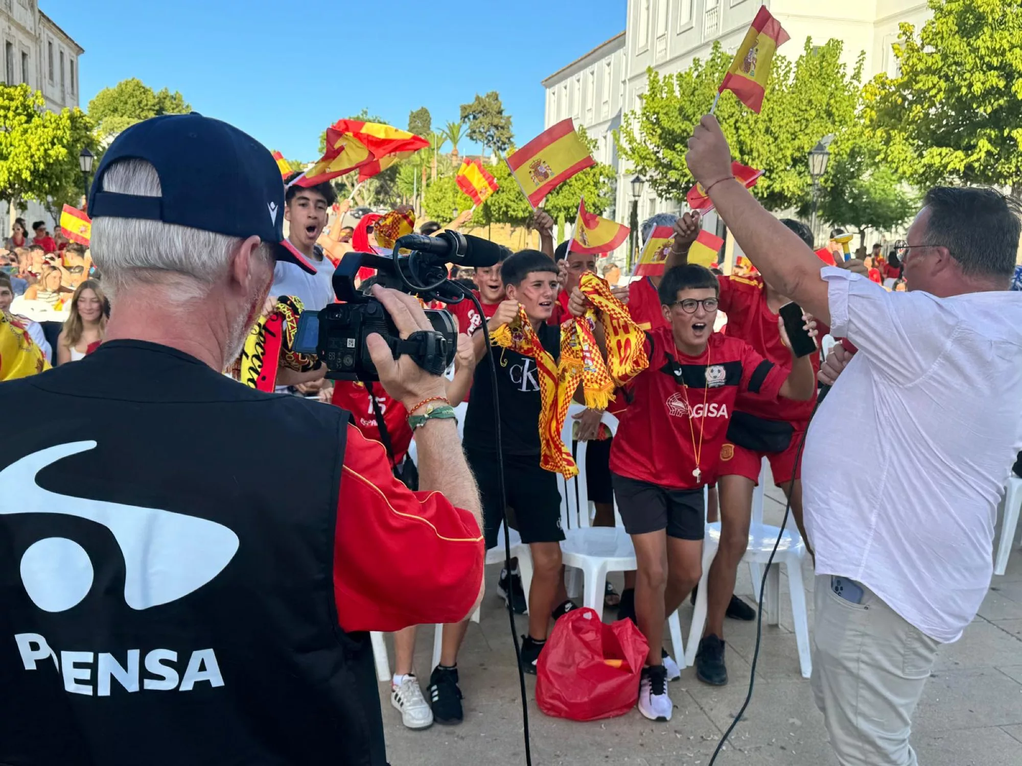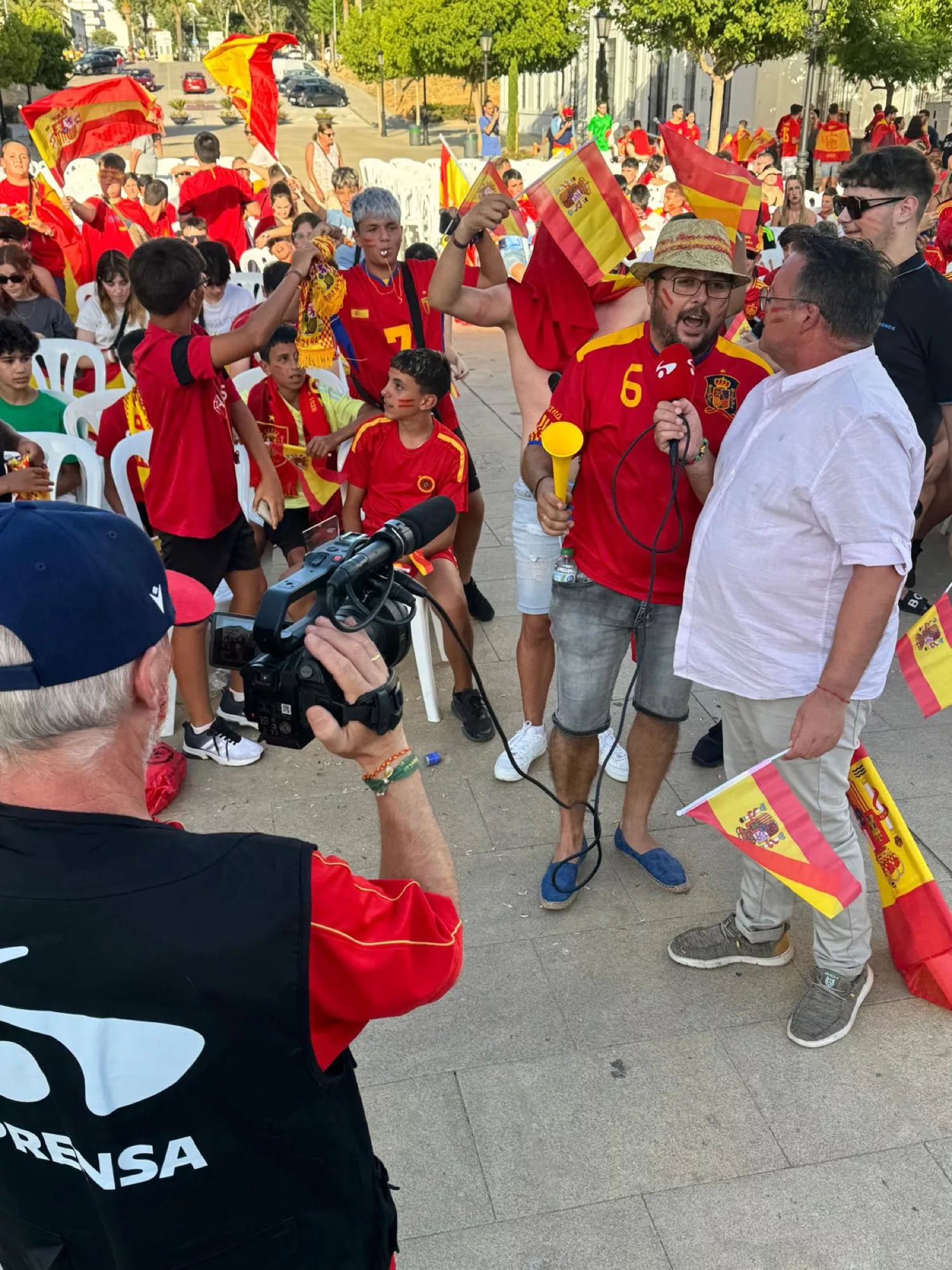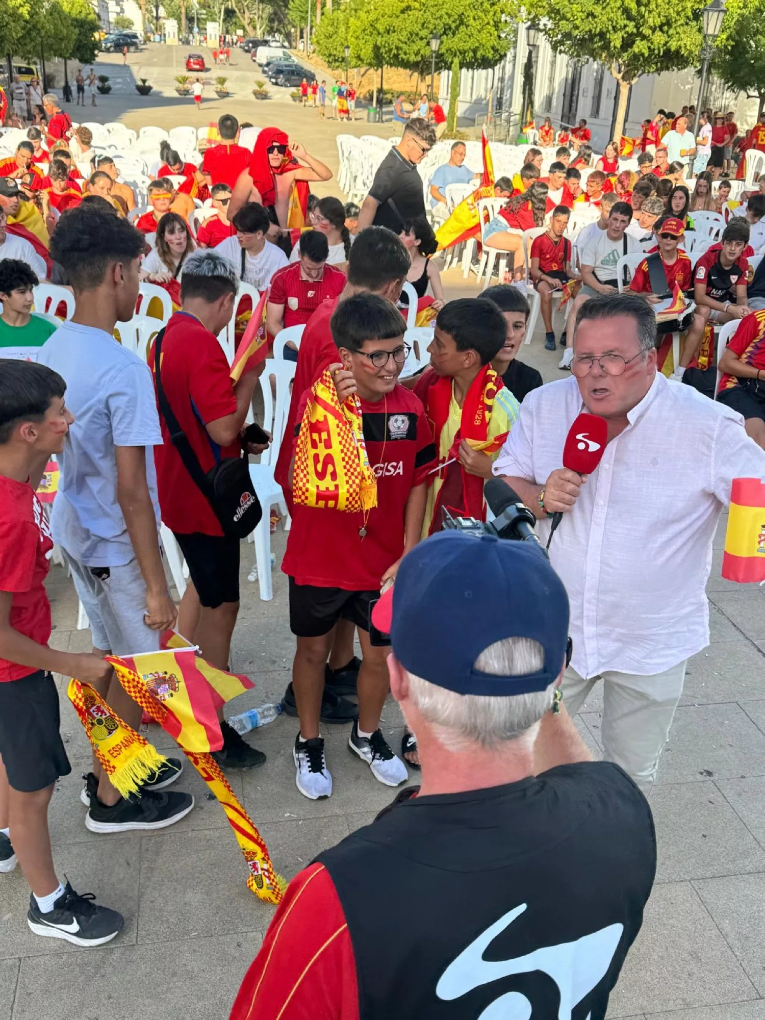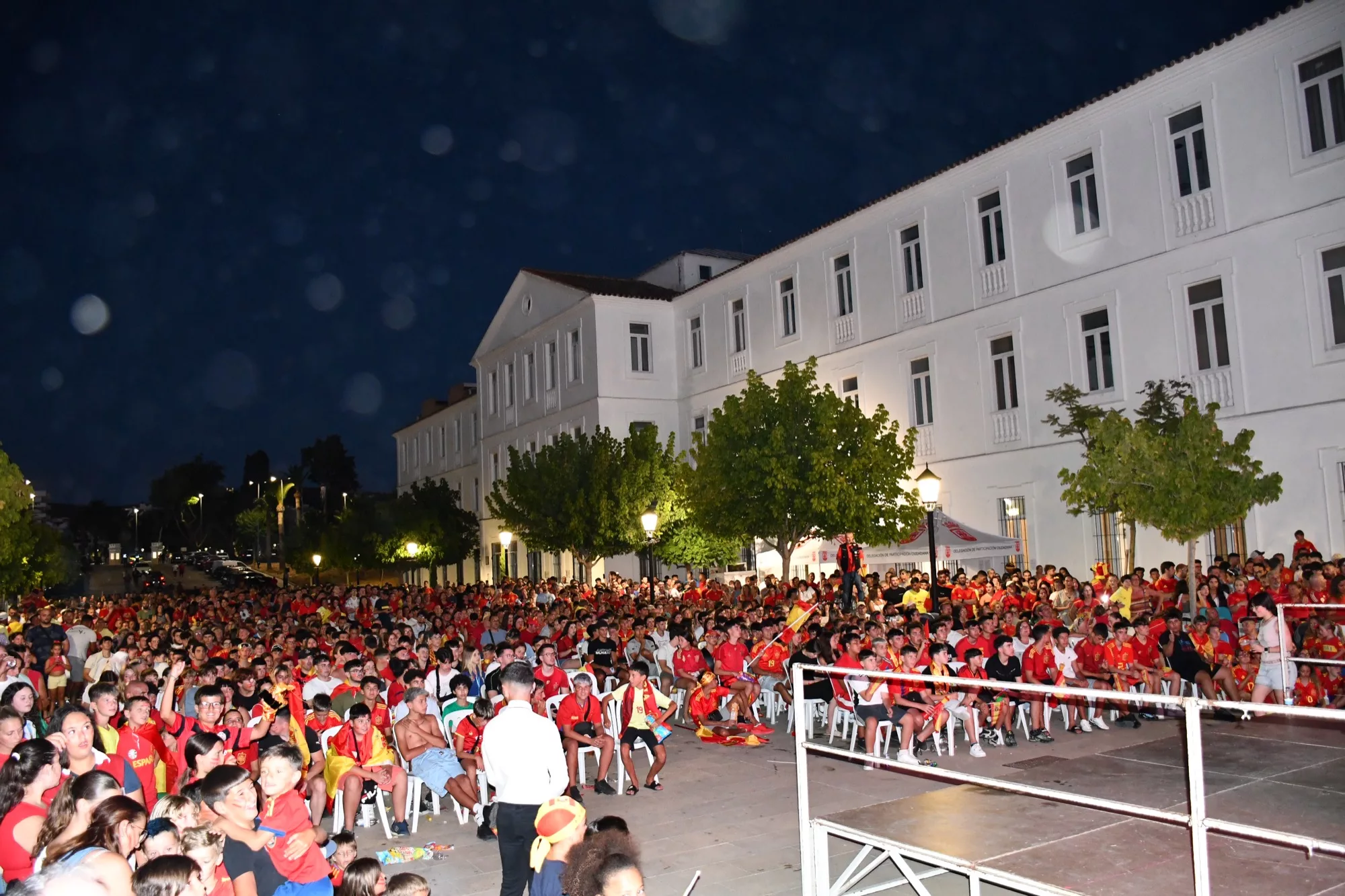 Miles de personas, la mayoría vistiendo los colores de la Selección Española, han apoyado este domingo a La Roja en la sanroqueña Plaza de las Constituciones, y han celebrado por todo lo alto la victoria sobre Inglaterra del equipo de Luis de la Fuente por 2 a 1. El Ayuntamiento había montado una fiesta para esta celebración, con pantalla gigante, pintacaras y música de Dj.