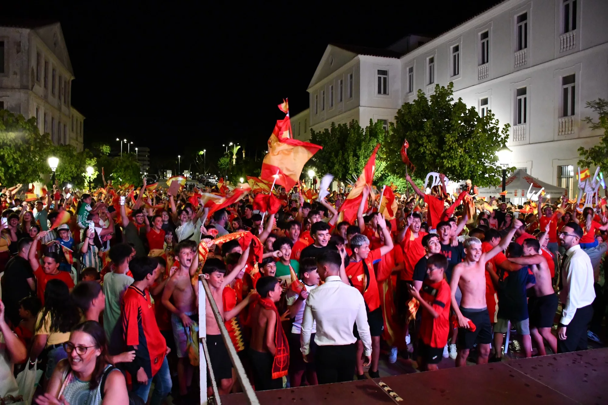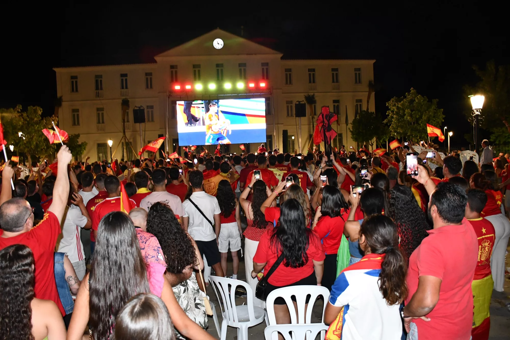 El teniente de alcalde David Ramos y el concejal Fernando Vega no quisieron perderse la celebración y estuvieron en la Plaza de las Constituciones desde que a las 19.00 horas comenzaron las actividades. Además de la pantalla gigante, hubo pintacaras con la bandera rojigualda, y se disfrutó de la música del Dj Michael Thin, que acompañó de manera magistral toda la noche, pero en especial en la gran celebración, tras el pitido final del árbitro y con la entrega de la copa de campeones.
