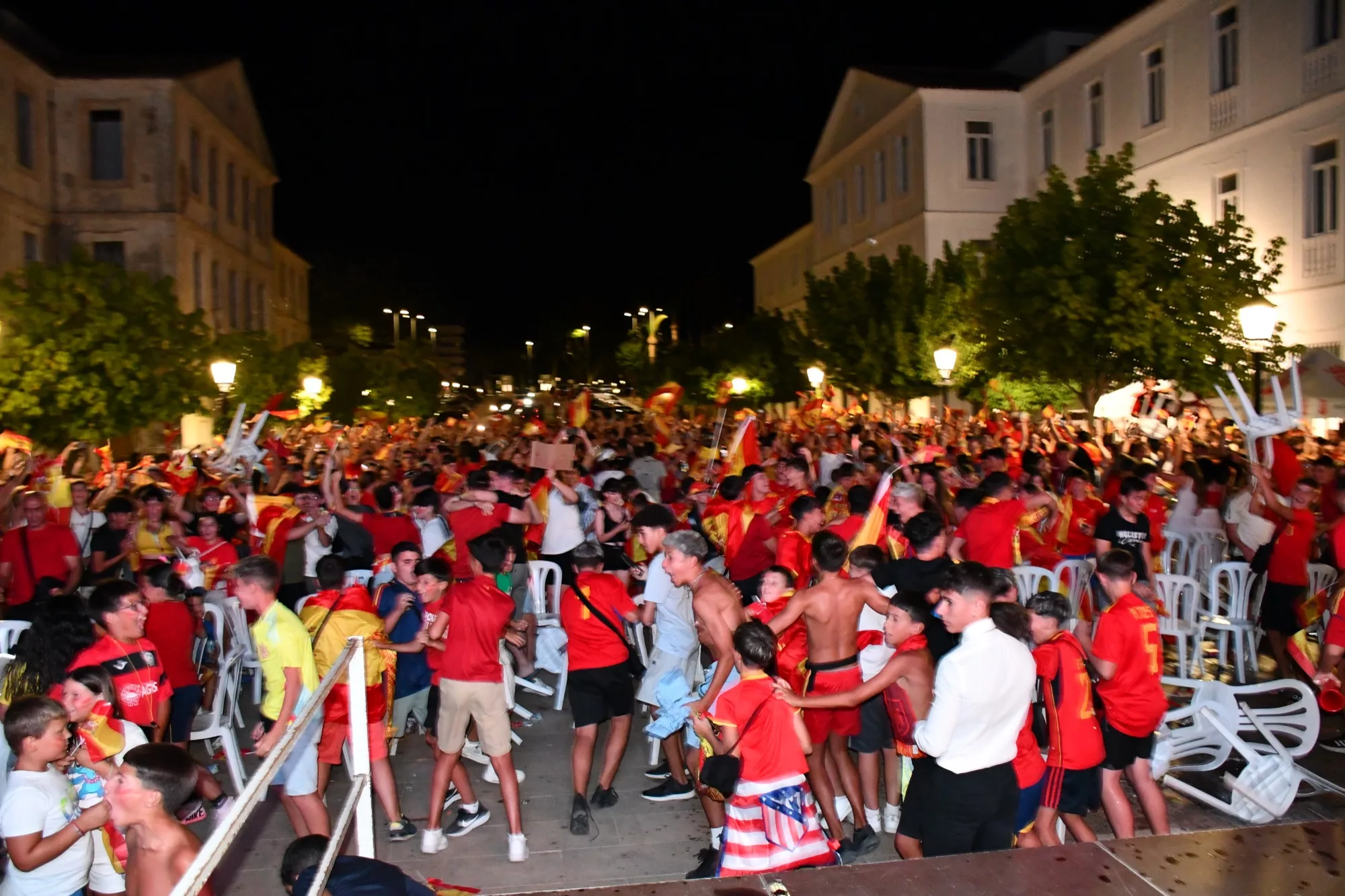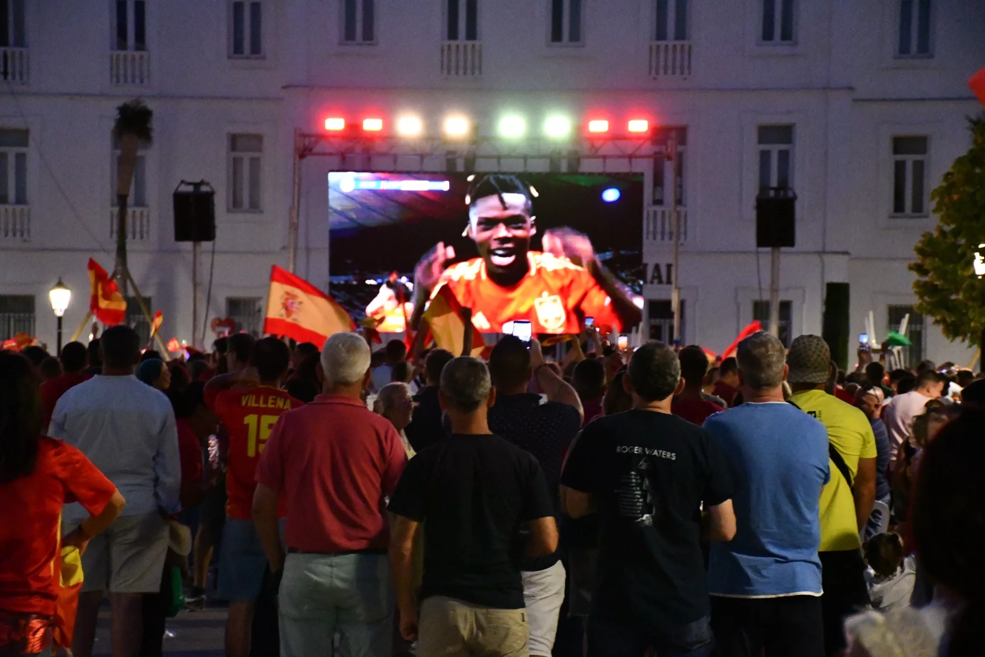 La Plaza de las Constituciones se ha teñido de rojo en la noche de este domingo para seguir en directo por pantalla gigante la final de la Eurocopa 2024 entre España e Inglaterra. Miles de personas han coreado los goles de Nico Williams y de Mikel Oyarzabal que han dado la victoria a La Roja, y han celebrado por todo lo alto una jornada histórica para el deporte español.