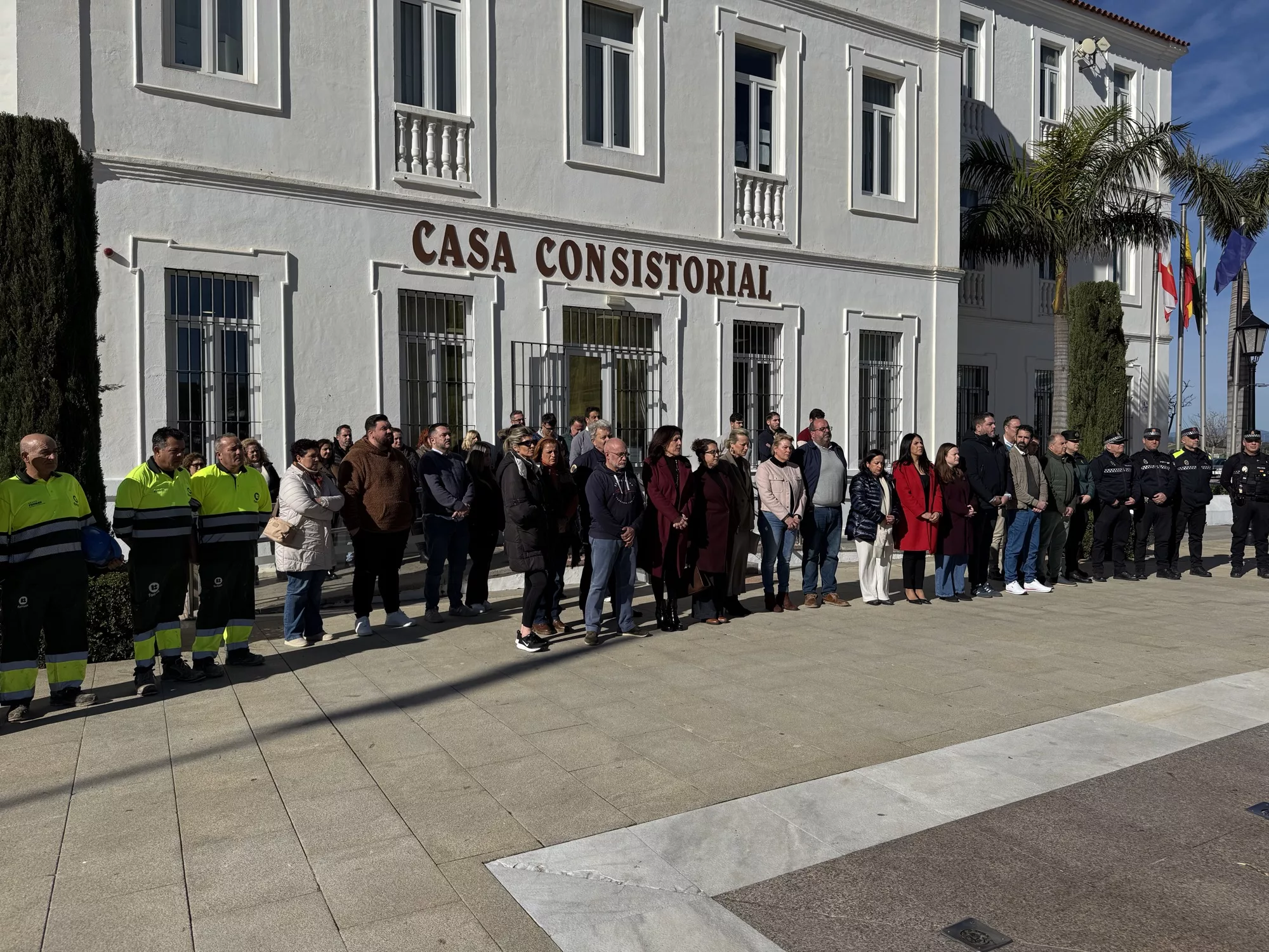 San Roque ha recordado esta mañana a las víctimas del accidente ferroviario producido ayer domingo en la localidad cordobesa de Adamuz, guardando un minuto de silencio a las puertas del Ayuntamiento.