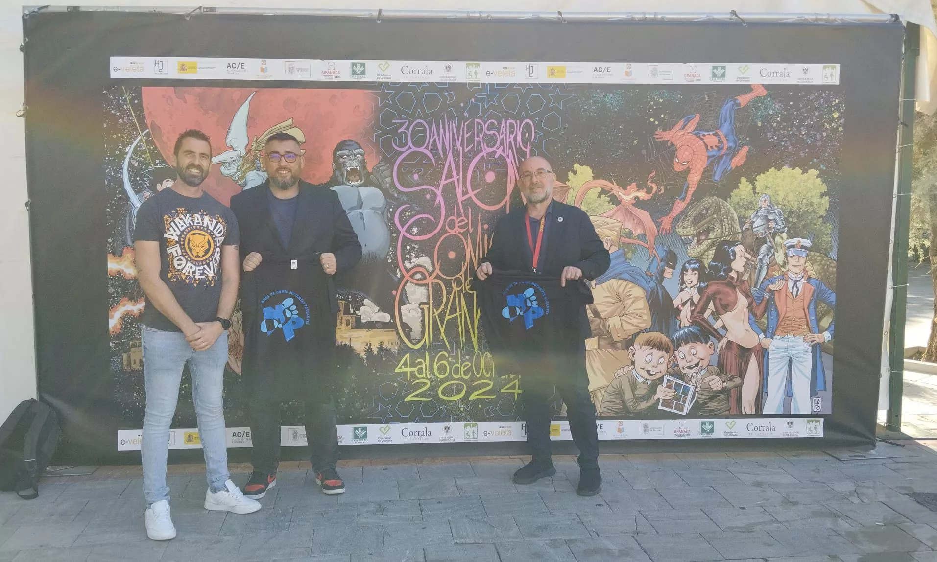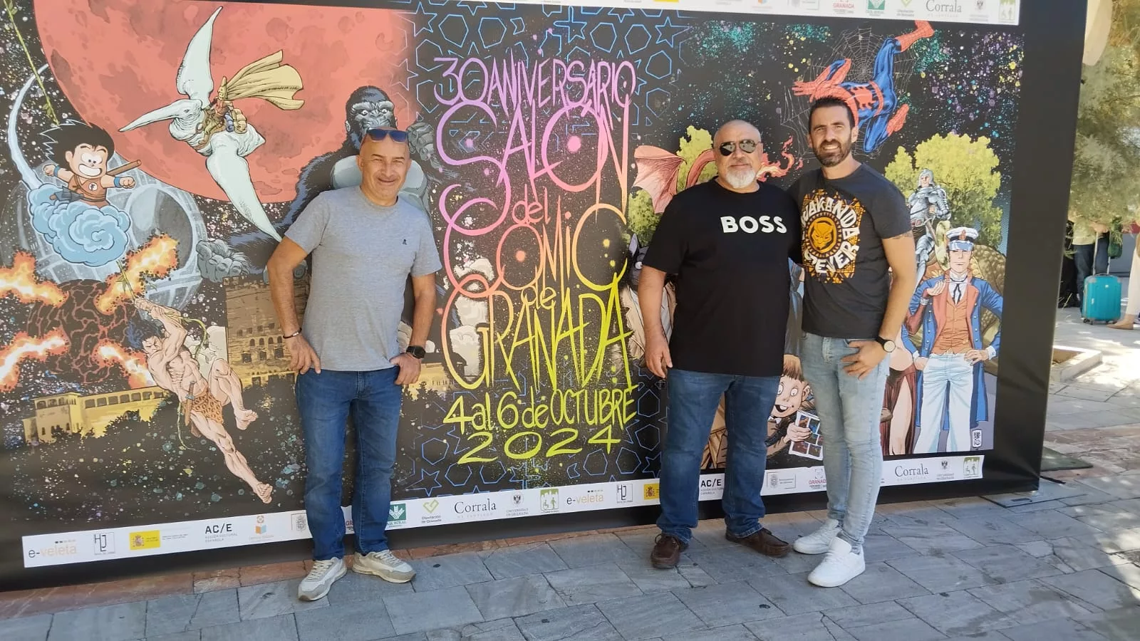 La visita, en la que ha participado el teniente de alcalde David Ramos, también sirve para captar ideas y hacer contactos para mejorar de cara al futuro. De hecho, Ramos ha mantenido un encuentro con el jerezano Jesús Merino, prestigioso dibujante e ilustrador y autor del cartel del Salón del Cómic de Granada de este año. Ambos han cerrado el acuerdo para que Merino exponga en San Roque la obra que precisamente muestra estos días en la capital granadina.
