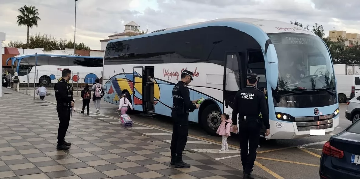 Agentes de la Policía Local, junto a la Agrupación de Tráfico de la Guardia Civil durante las fechas señaladas, realiza el control del transporte escolar.