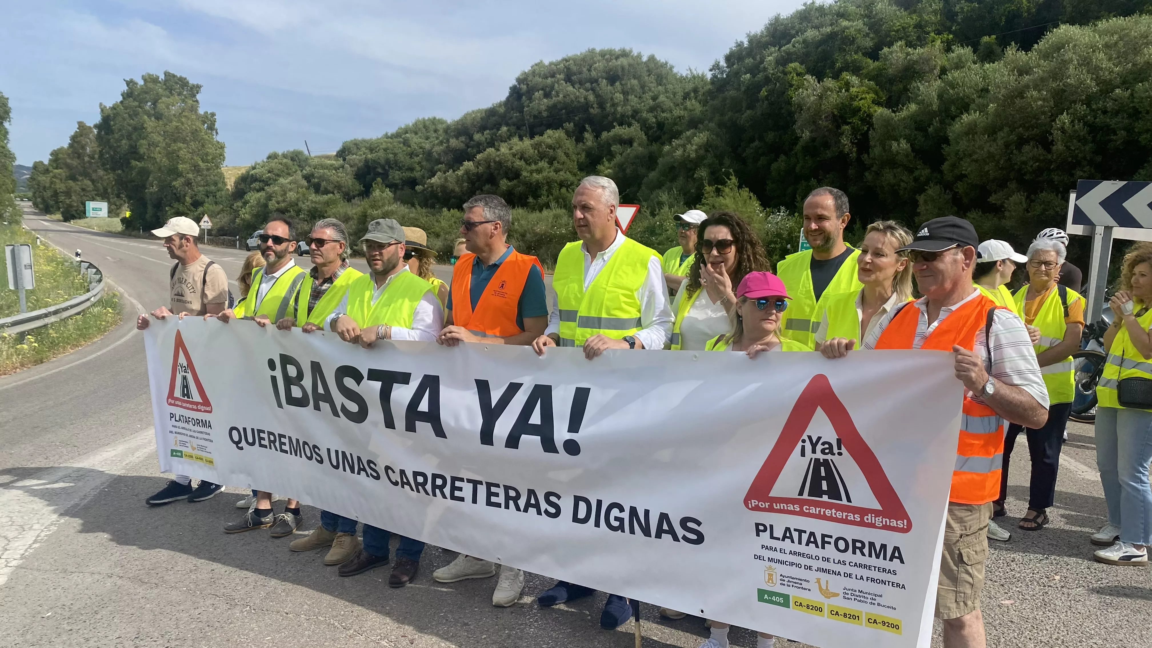 El alcalde de San Roque, Juan Carlos Ruiz Boix ha asistido este Domingo junto a vecinos de Castellar de la Frontera, San Martín del Tesorillo y Jimena de la Frontera, con sus respectivos alcaldes a la cabeza, el alcalde de Castellar, Adrián Vaca, el de Jimena Francisco Gómez, el regidor de San Martín del Tesorillo Jesús Fernández, y el presidente de la plataforma ciudadana por el arreglo de la carretera, Juan José Gómez, han asistido a una concentración para exigir a la Junta el arreglo urgente de la carretera A-405, que atraviesa el Campo de Gibraltar y poblaciones de Málaga.