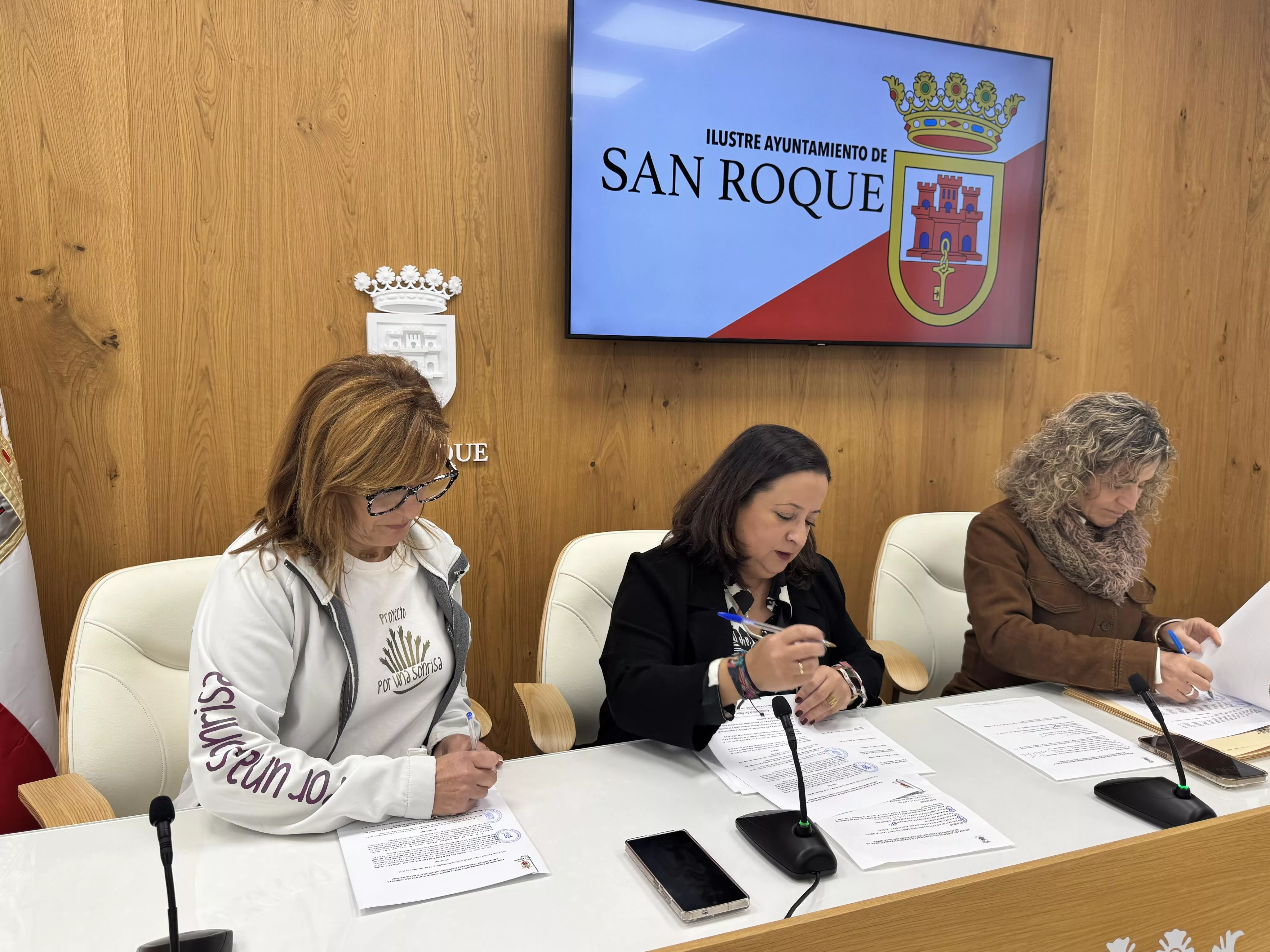 El Ayuntamiento de San Roque ha suscrito un convenio de colaboración con la Asociación Por una sonrisa. La teniente de alcalde, María del Mar Collado, junto a la secretaria general, Ana Núñez, han firmado en Alcaldía dicho convenio acompañados por la presidenta de la entidad, Eva Ledesma.