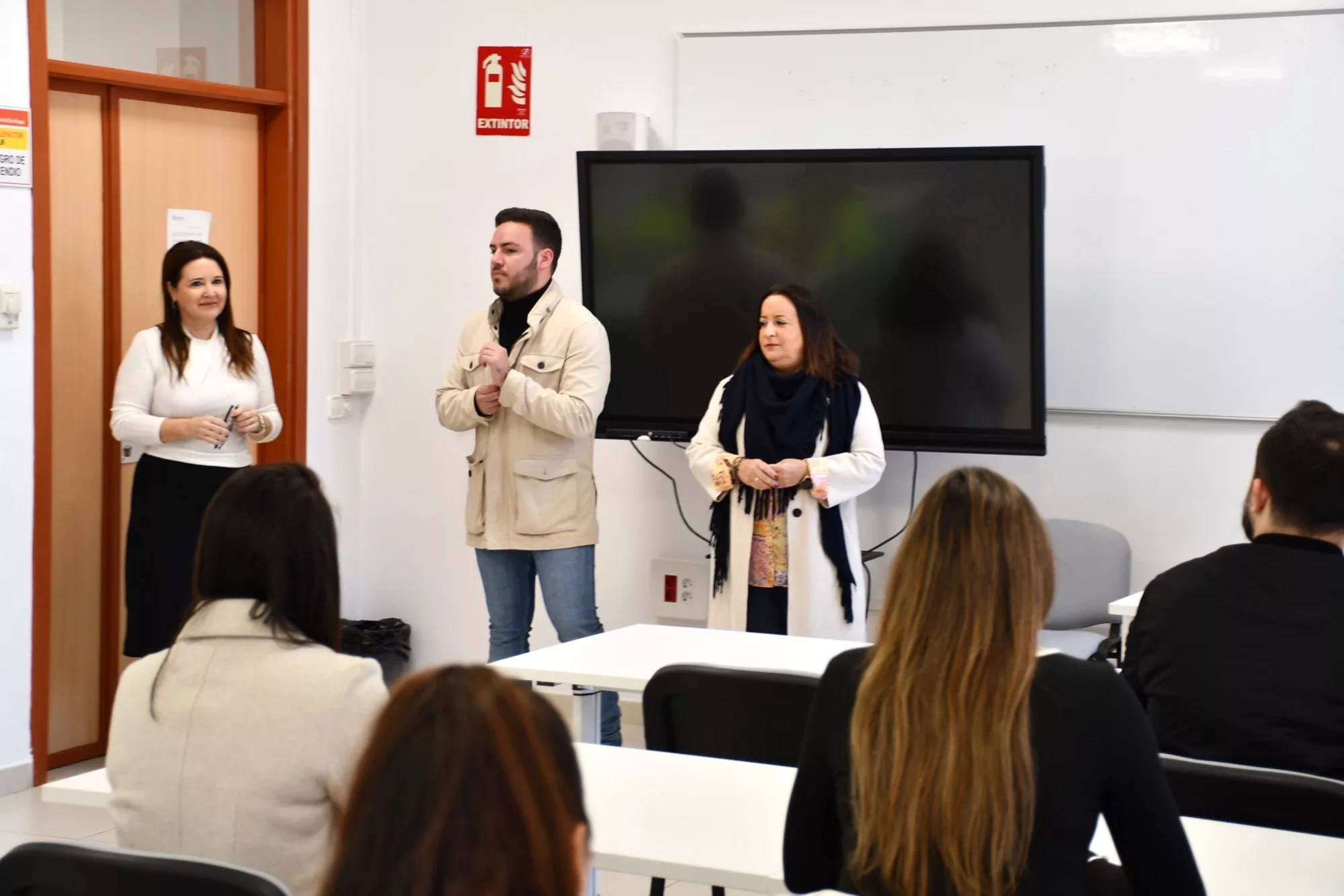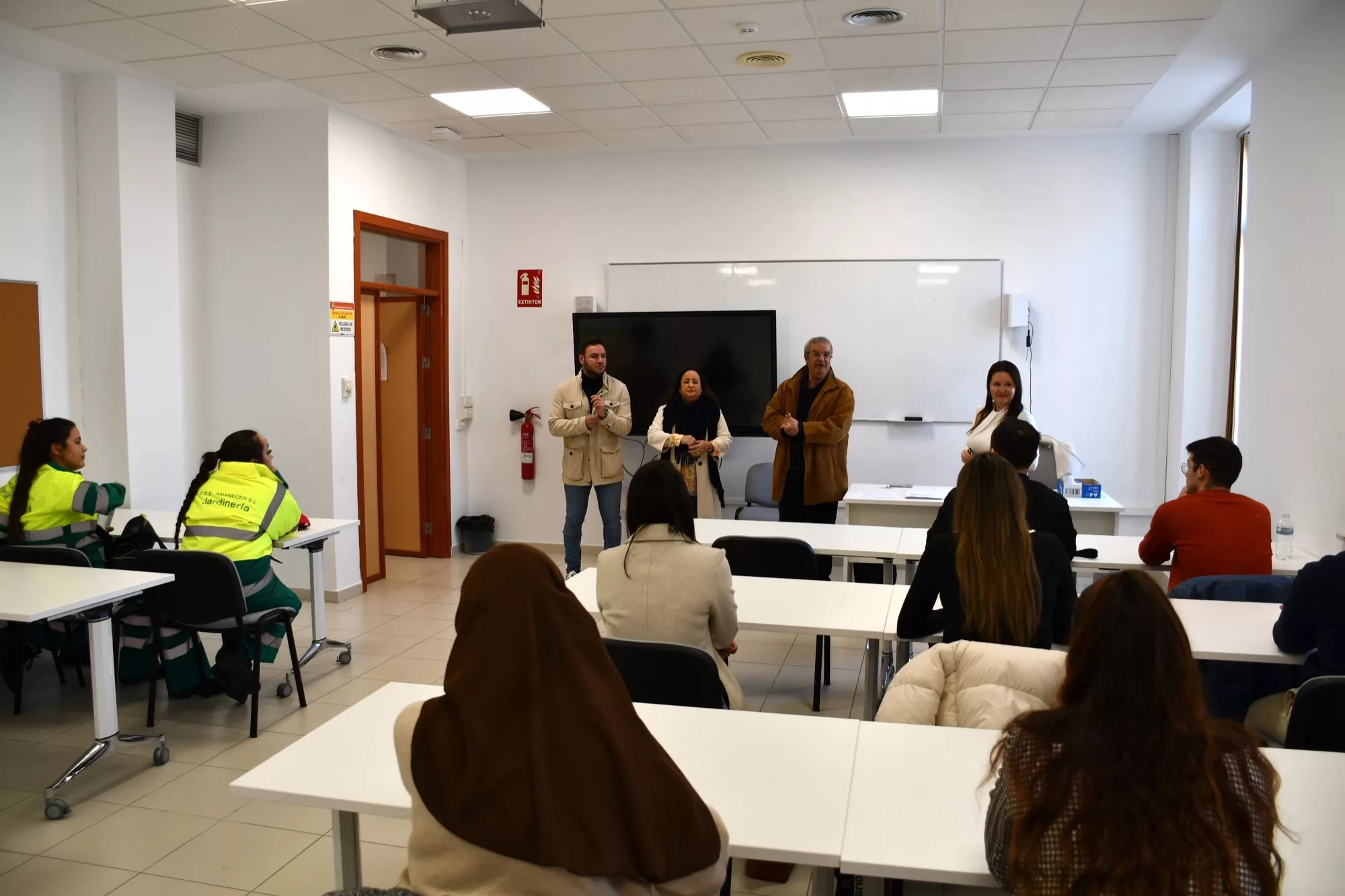 La alcaldesa accidental, María del Mar Collado, y el teniente de alcalde de Empleo y Amdel, Fernando Vega, han dado la bienvenida en el Edificio Diego Salinas a un total de once personas contratadas durante seis meses, y que se han incorporado a sus nuevos puestos de trabajo en el Ayuntamiento. Se trata de los primeros jóvenes que entran a trabajar en distintos departamentos municipales a través del programa “Activa-T Joven”, de un total de 24.