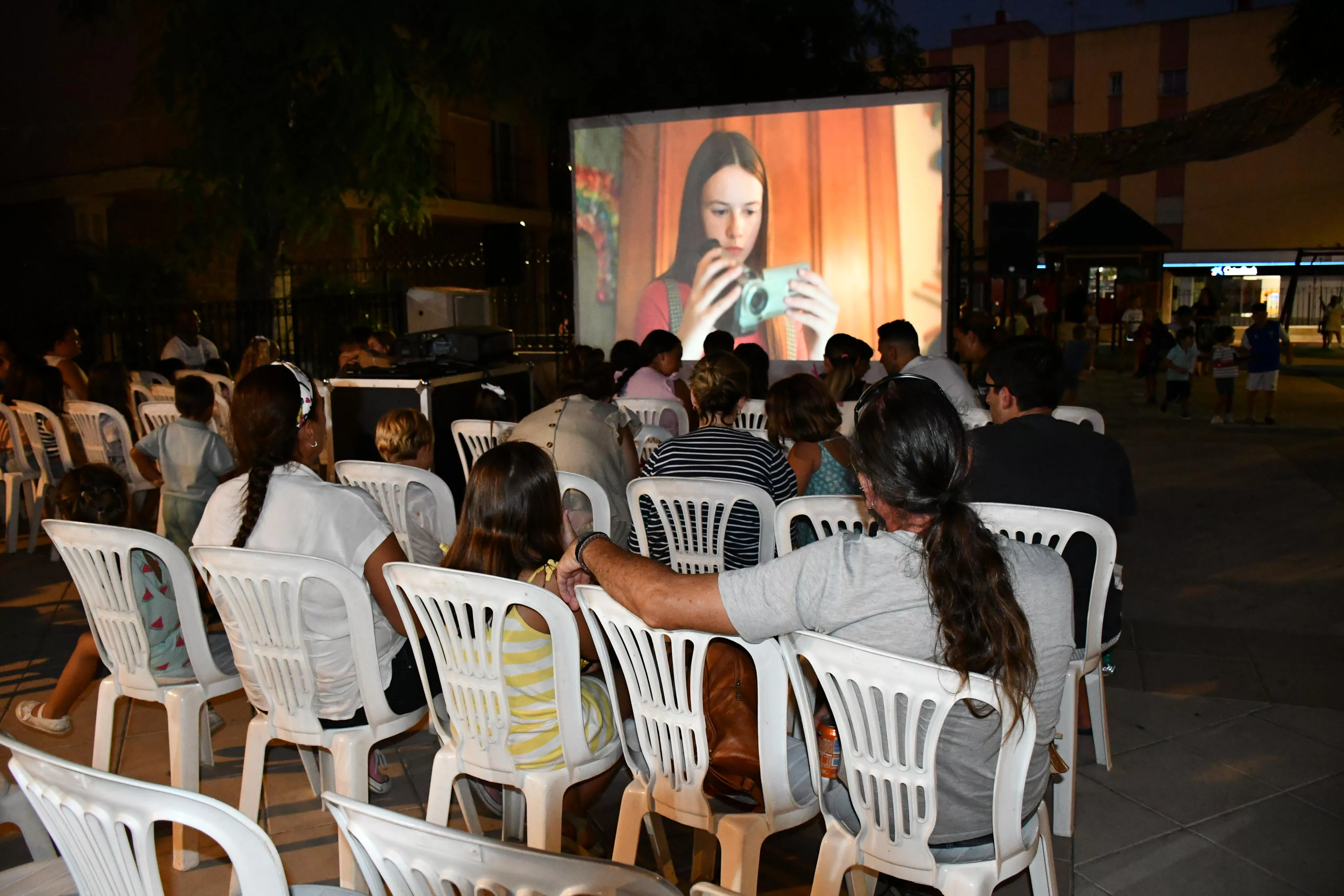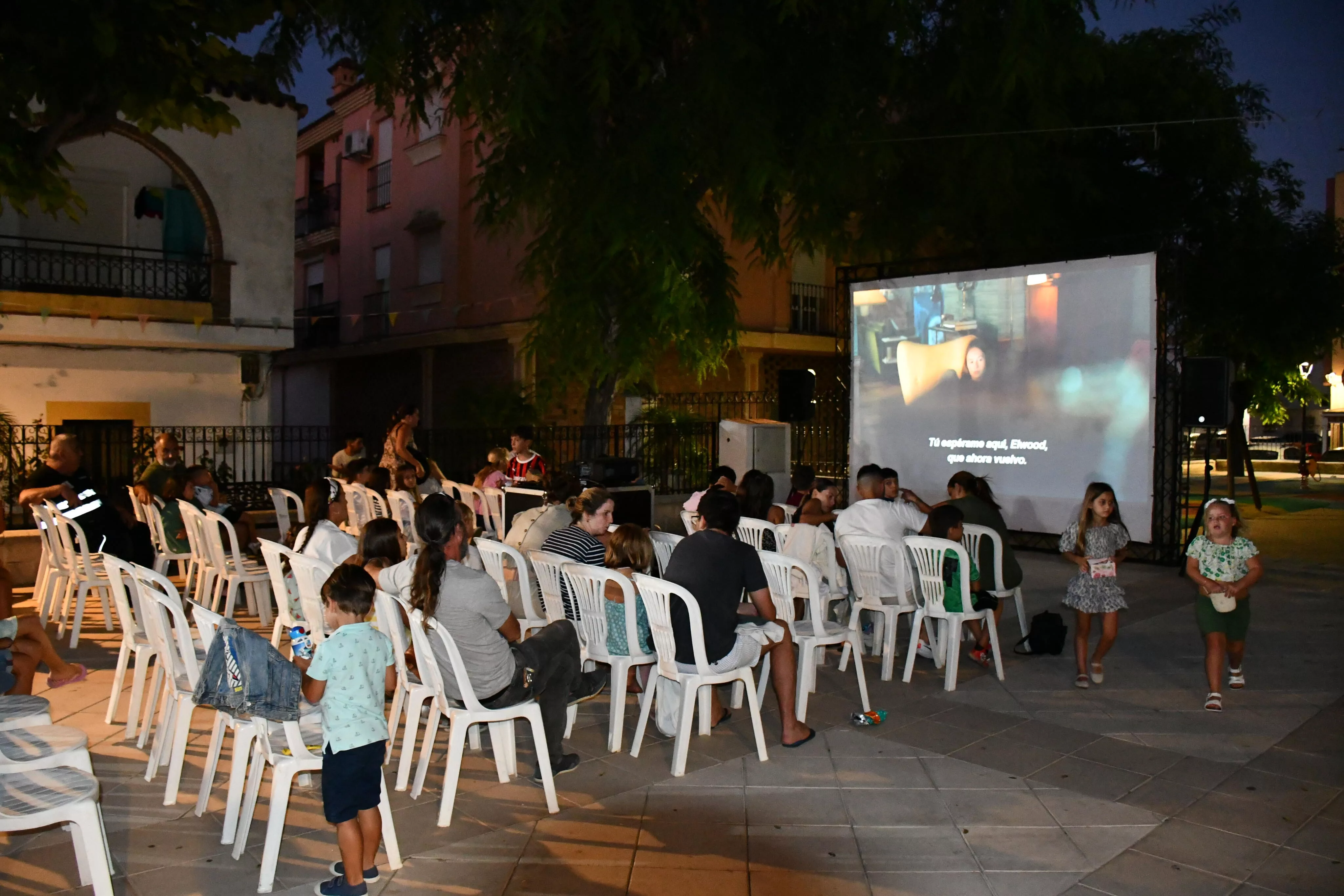 En esta proyección acudieron el teniente de alcalde responsable de la zona Juan Serván junto al edil Alfonso Valdivia, para disfrutar del evento familiar