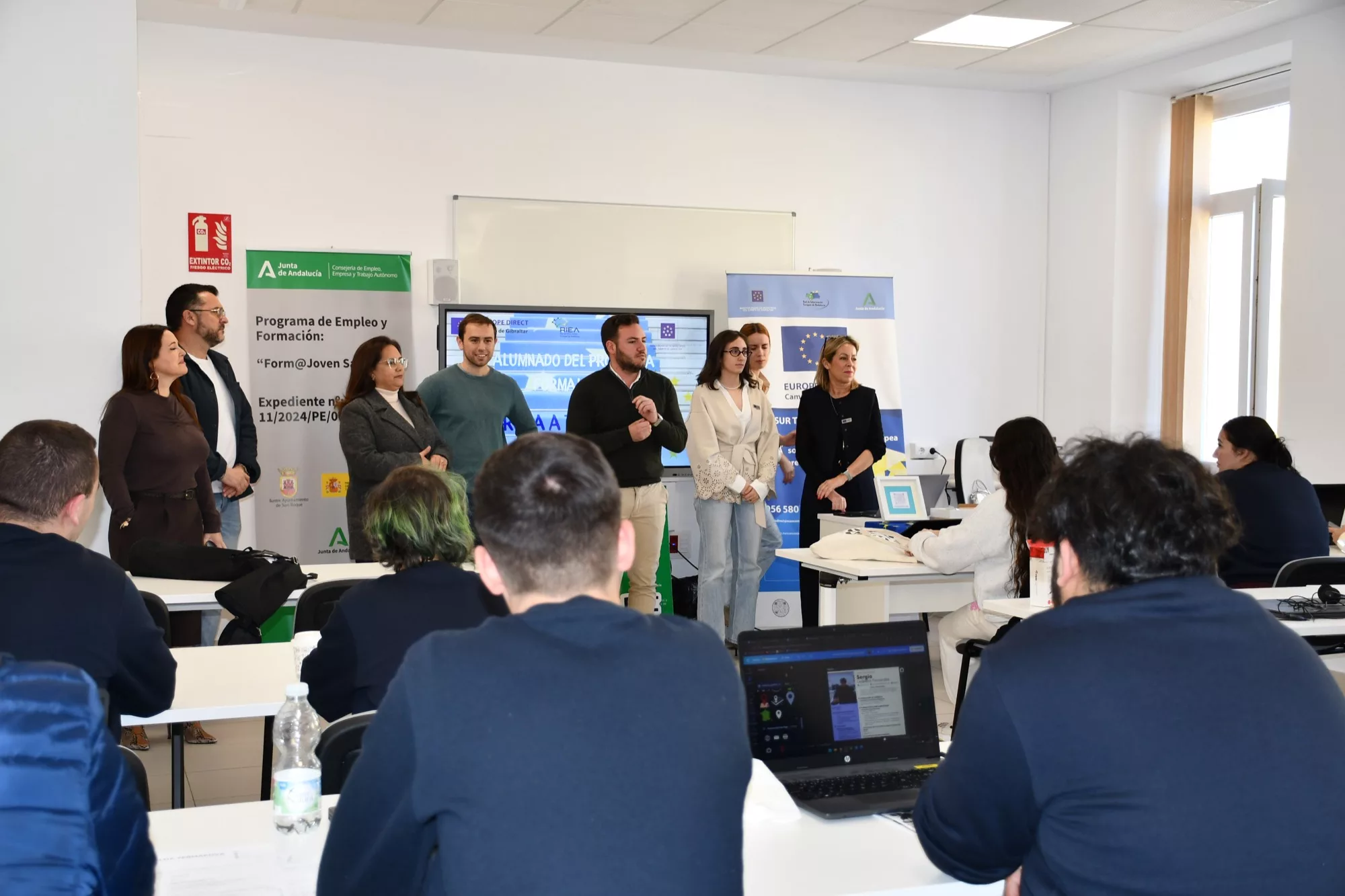 La sesión informativa “Europa a tu alcance” dirigida a los alumnos del programa de empleo y formación «Form@Joven San Roque» se ha desarrollado en una de las aulas homologadas por la Junta de Andalucía para la impartición de los certificados de profesionalidad en Amdel en el Edificio Diego Salinas.