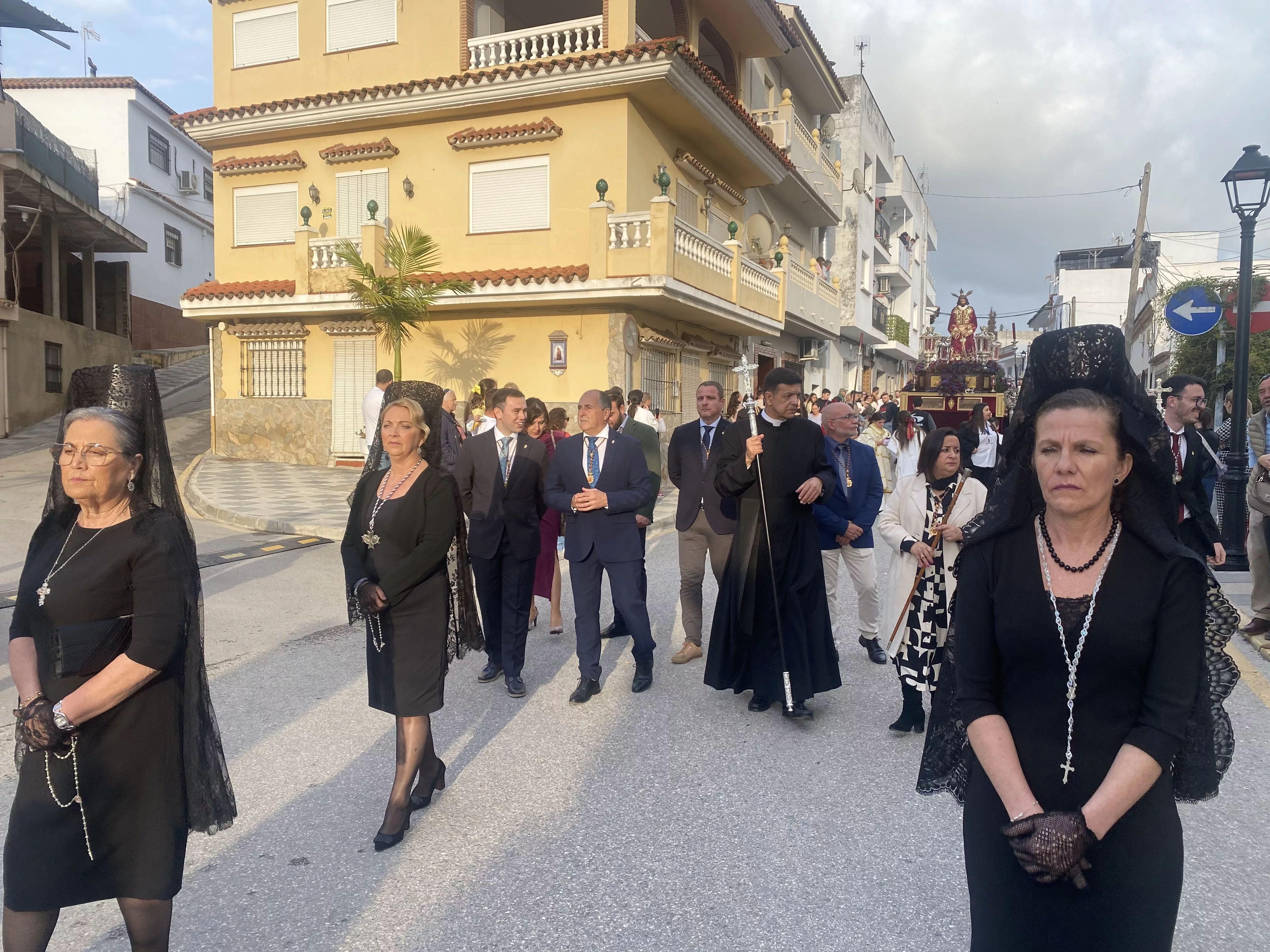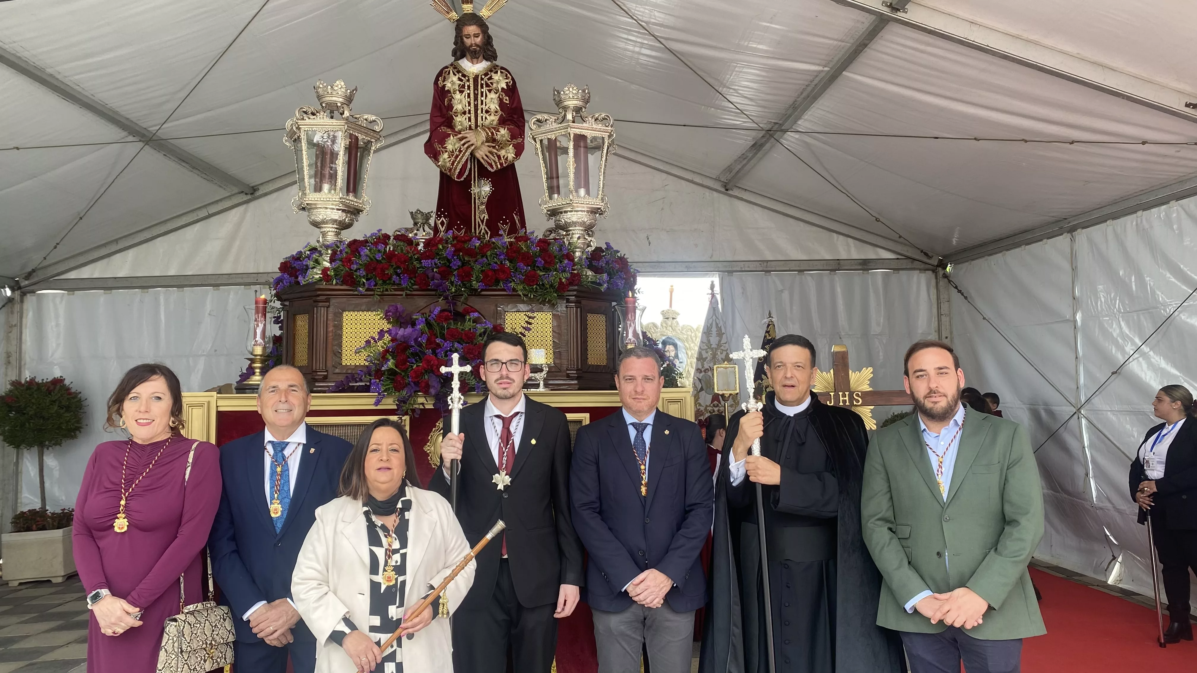 Entre los numerosos presentes se encontraban la alcaldesa accidental y delegada de Tradiciones, María del Mar Collado, el teniente de alcalde de Estación, Taraguilla y Miraflores, Juan Serván, y otros ediles de la Corporación, además del párroco Uriel Antonio Rodríguez Sierra, entre otras personalidades del mundo cofrade. El acompañamiento musical corrió a cargo de la Agrupación Musical Santa Bárbara de La Línea de la Concepción.