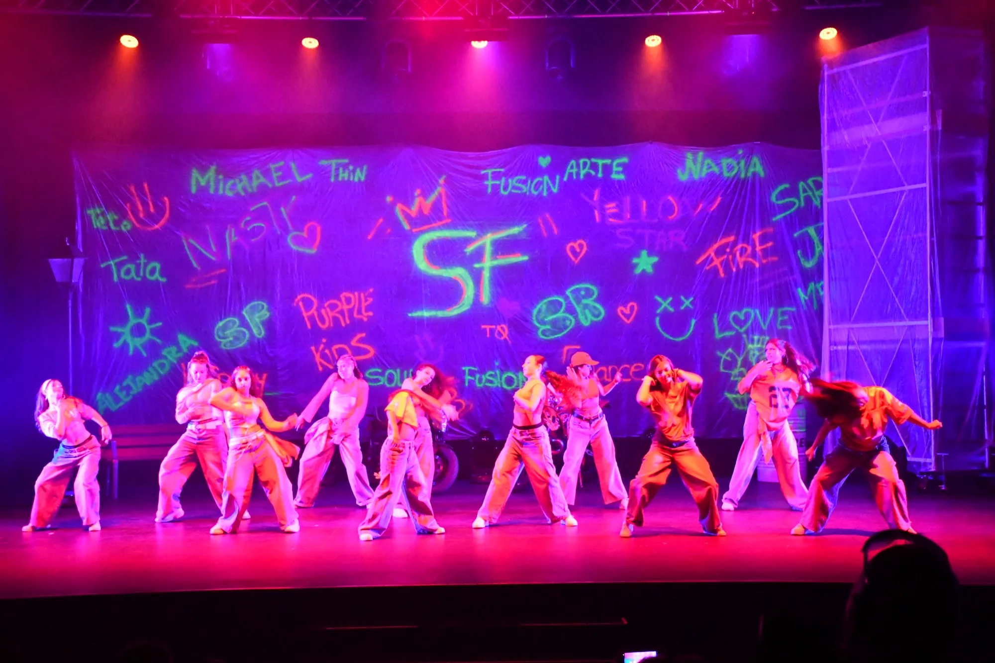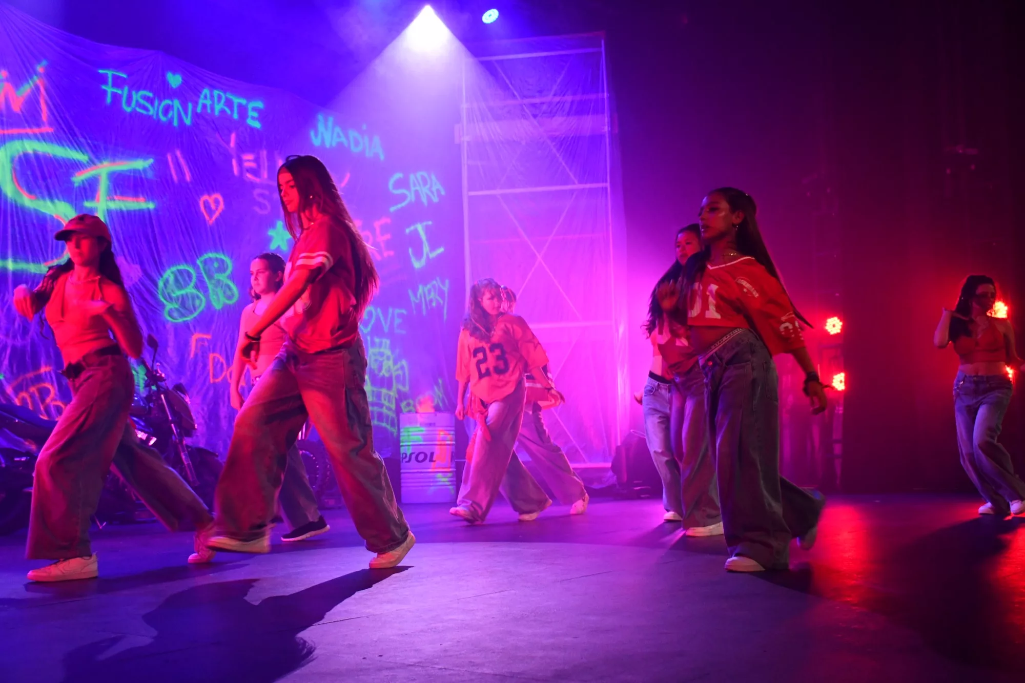 La academia Soul Fusion, dirigida por Sara Rojas, ofreció un espectáculo de baile urbano en un escenario que mostraba el ambiente perfecto para los bailes protagonizados por el casi medio centenar de alumnos. Las actuaciones comenzaron a las 20.00 horas en un Teatro Juan Luis Galiardo repleto de público que animó y disfrutó con cada una de las coreografías.