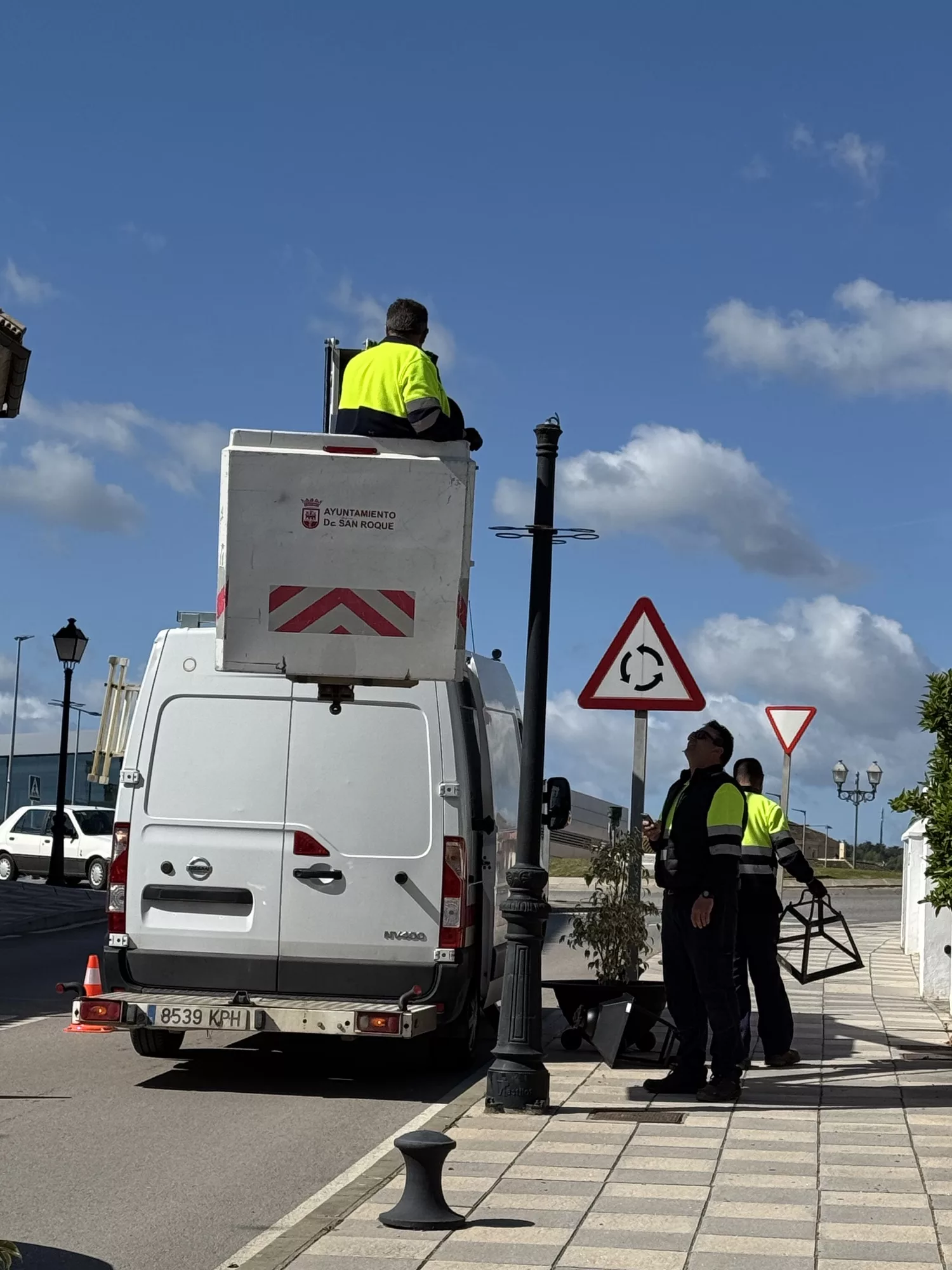 Paralelamente a Pueblo Nuevo, informó de que también había otro grupo de trabajo en Taraguilla cambiando 80 luminarias alrededor de la Plaza de las Flores. Jiménez recordó que “este cambio posibilita el ahorro energético, la no-contaminación lumínica y se ahorra un 75% del consumo anterior al actual, que repercute en la facturación que llega al Ayuntamiento por parte de la empresa Endesa”. Gracias al cambio a led con estas luminarias tipo “villa”, se baja el consumo eléctrico a una cuarta parte con respecto a la descarga antigua, pasando de 150 a 40w actuales.
