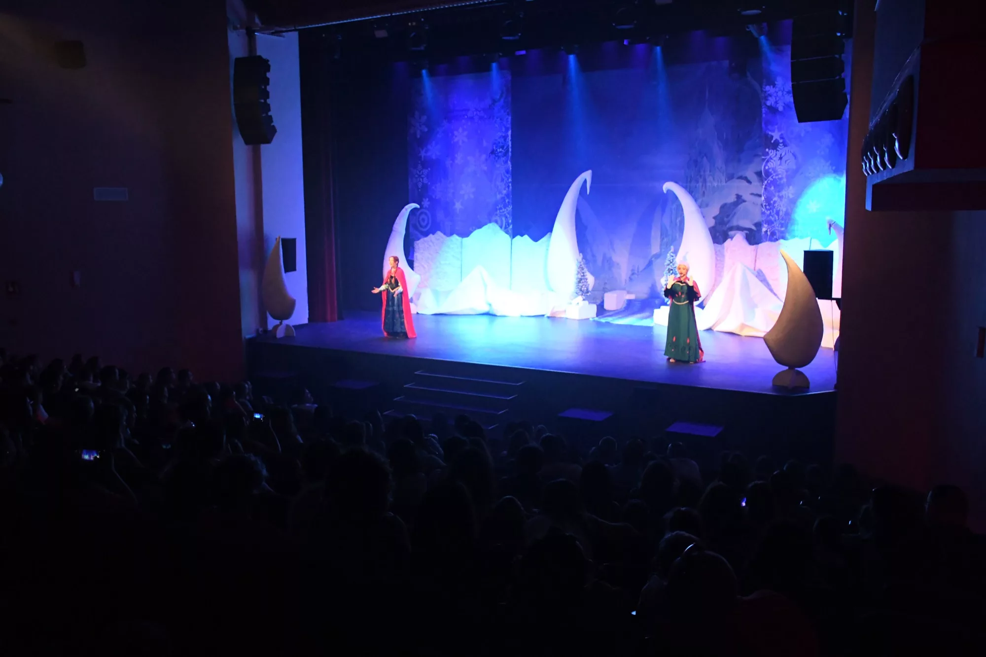 Ayer domingo el Teatro Juan Luis Galiardo se llenó de familias para disfrutar del musical “La reina del hielo”, un espectáculo inspirado en las historias de “Frozen”. Los tenientes de alcalde Mónica Córdoba y David Ramos saludaron a los artistas antes de salir al escenario.