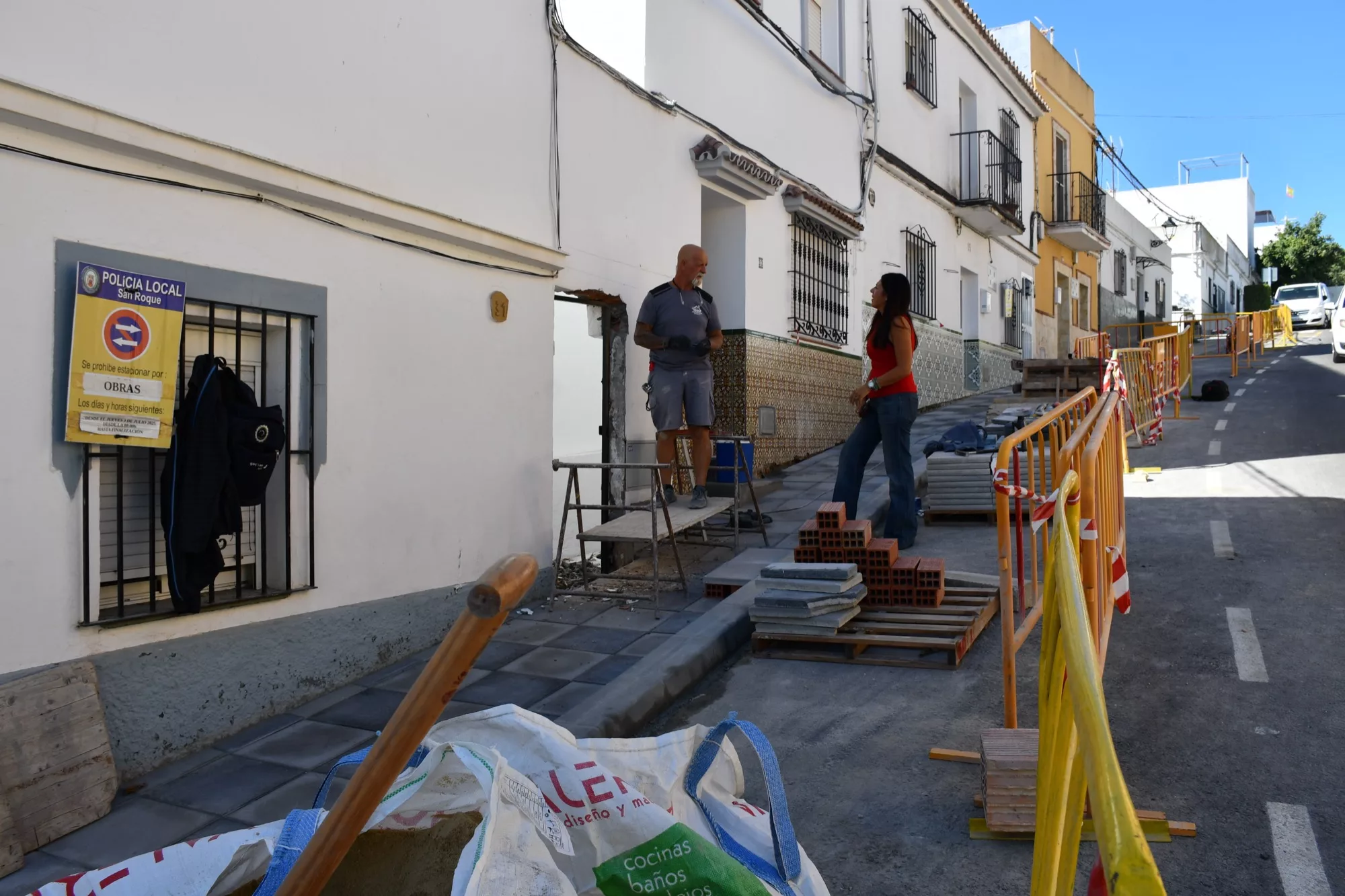 La teniente de alcalde delegada de Obras y Servicios, Belén Jiménez, ha visitado las obras de mejora del acerado de la calle Almenara de Guadiaro, uno de los tantos puntos de obra que se realizan en el término municipal de San Roque. Estas consisten en la tercera fase de la reforma de la acera y alcorques y la correspondiente eliminación de barreras arquitectónicas en dicha calle.