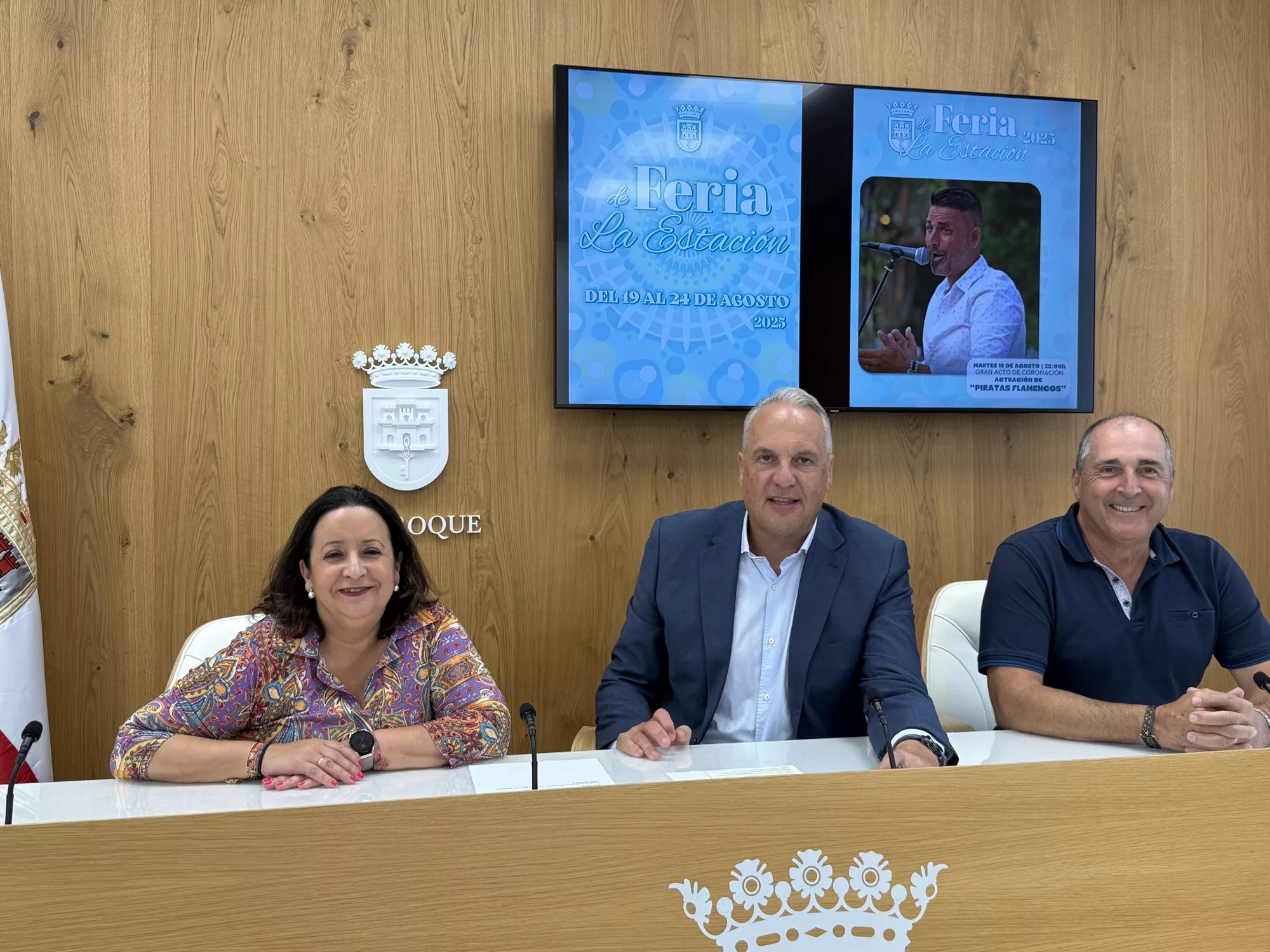 El alcalde, Juan Carlos Ruiz Boix, y los delegados de Fiestas y de la zona de Estación, Taraguilla y Miraflores, María del Mar Collado y Juan Serván, han presentado la programación de la Feria de la Estación 2025. Este año la fiesta, en vez de comenzar el miércoles con la Coronación en la Plaza San Bernardo, se iniciará el martes, para reservar el miércoles para la procesión del patrón de la barriada.