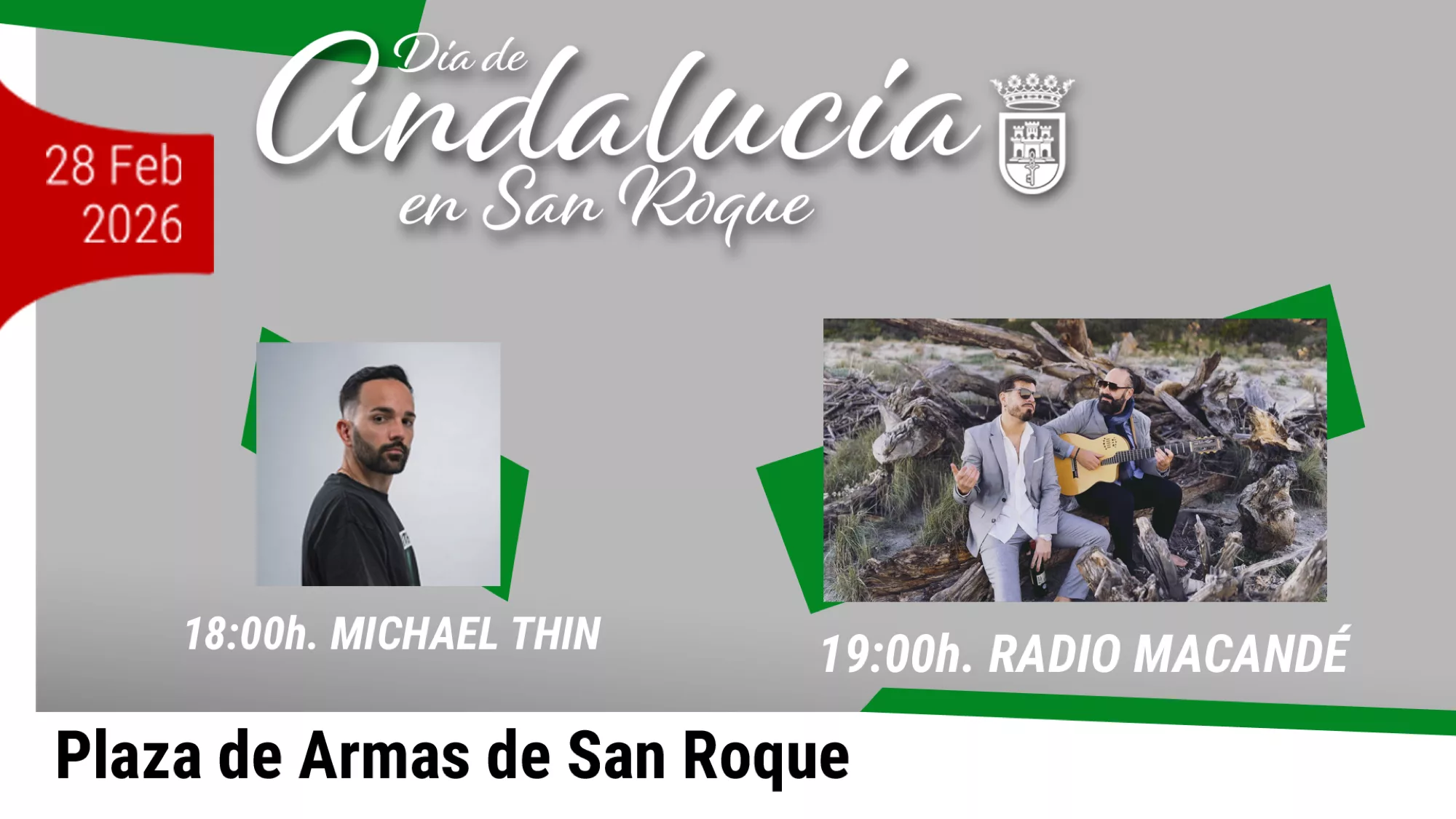 Desde la Delegación de Cultura del Ayuntamiento de San Roque, que dirige la teniente de alcalde Ana Ruiz, se han organizado numerosos actos para festejar el Día de Andalucía este sábado 28 de febrero de 2026. Esta agenda cultural se desarrollará tanto por la mañana como por la tarde en San Roque Ciudad, Estación, Campamento, San Enrique y Torreguadiaro.