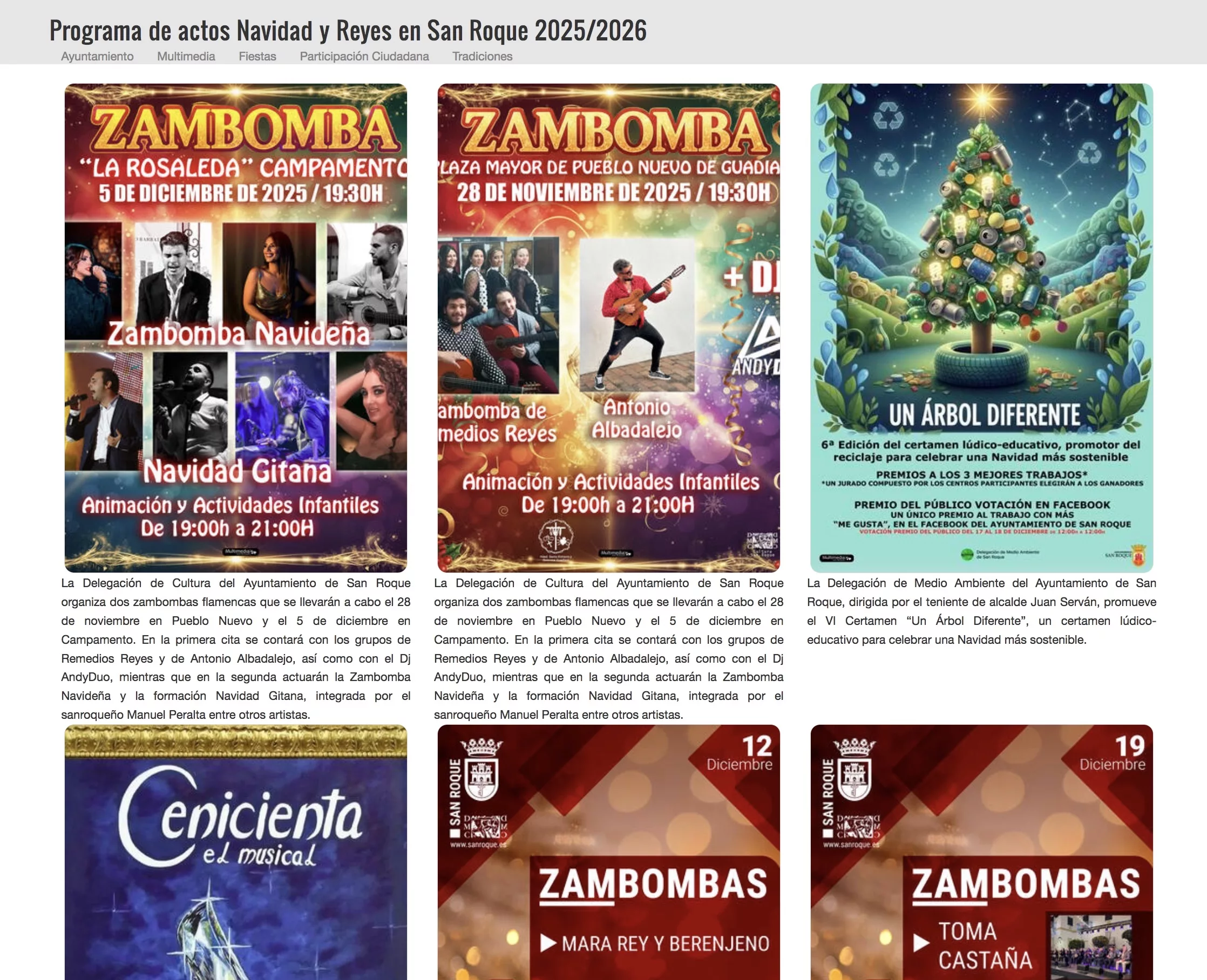 Toda la información junto a todos los detalles de los actos de “San Roque Ciudad de la Navidad”, se pueden encontrar en la página web del Ayuntamiento de San Roque (sanroque.es). Entre ellos, zambombas, belenes vivientes, fiestas infantiles, concursos, arrastres de latas y cabalgatas de Reyes.