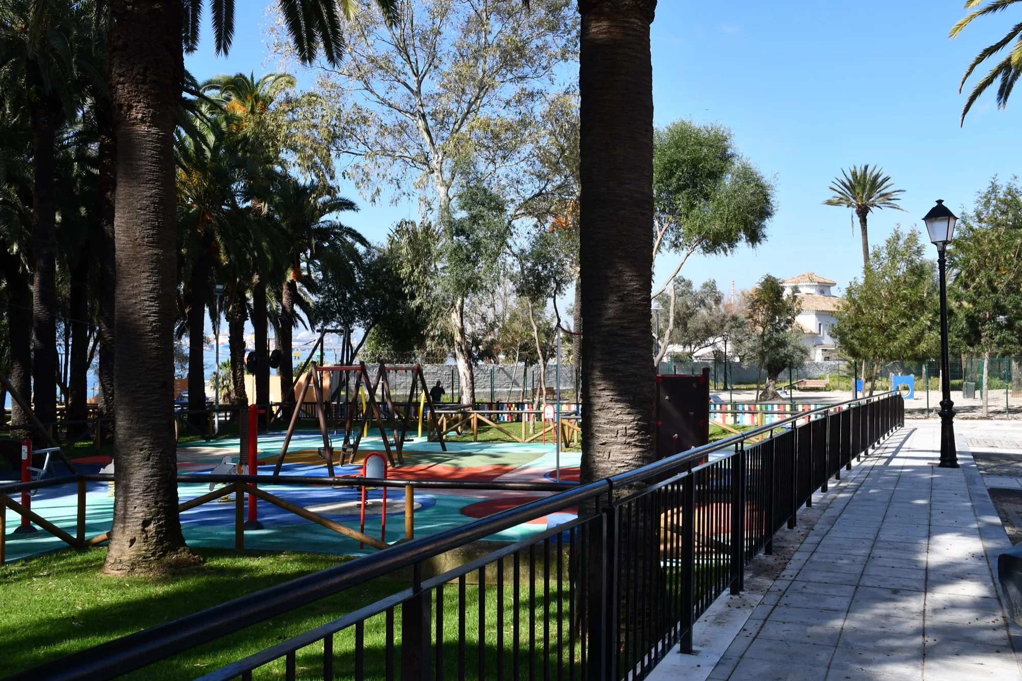 Jiménez junto al teniente de alcalde delegado de la zona de la Bahía, David Ramos, han visitado la zona para supervisar los trabajos de pintura que se están realizando en las barandillas de forja, las farolas, las mesas picnic, en general en los espacios comunes.