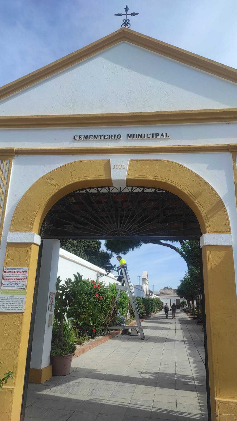 Además de los trabajos de albañilería y pintura, también se están acometiendo el cambio a luces led de las luminarias de los camposantos.