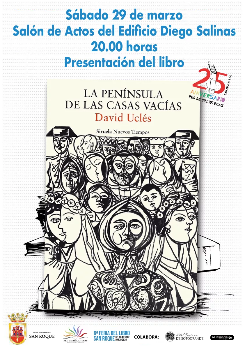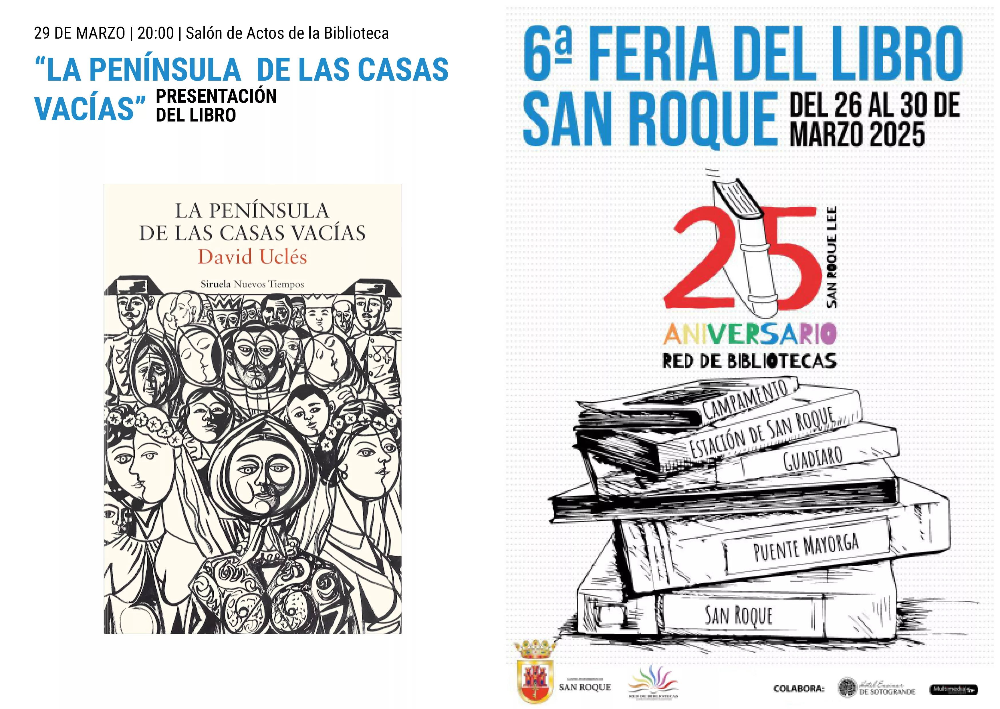 En cuanto al sábado 29 de marzo a las 12 del mediodía tendrá lugar el guiñol “Los juguetes del Rey Mago”, de John Ardila. Por la tarde, a partir de las 18:00 horas tendrá lugar un paseo narrado y musicado por Diego Magdaleno y Joselito. A las 20 horas se desarrollará en el salón de actos de la biblioteca la presentación del libro “La península de las casas vacías”, de David Uclés; y a las 21:00 horas en la carpa de la Alameda tendrá lugar el concierto a cargo de la banda de jazz “Honey River”.