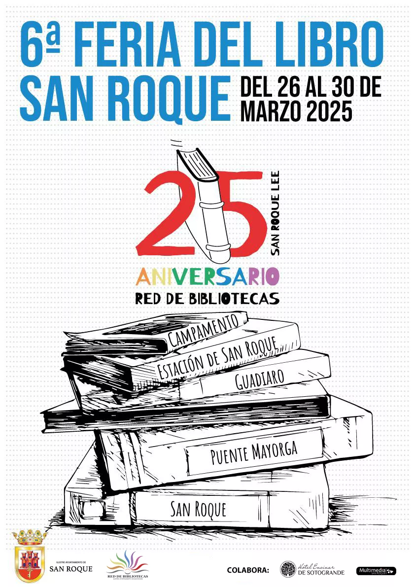 La sexta edición de la Feria del Libro, organizada por la Delegación de Bibliotecas, se celebra en San Roque del 26 al 30 de marzo. Una edición que comenzará el miércoles 26 de marzo con un Pasacalles Mágico de Cuentos con Stich, Vaina, Maui, Mario & Luigi y Hada Madrina.